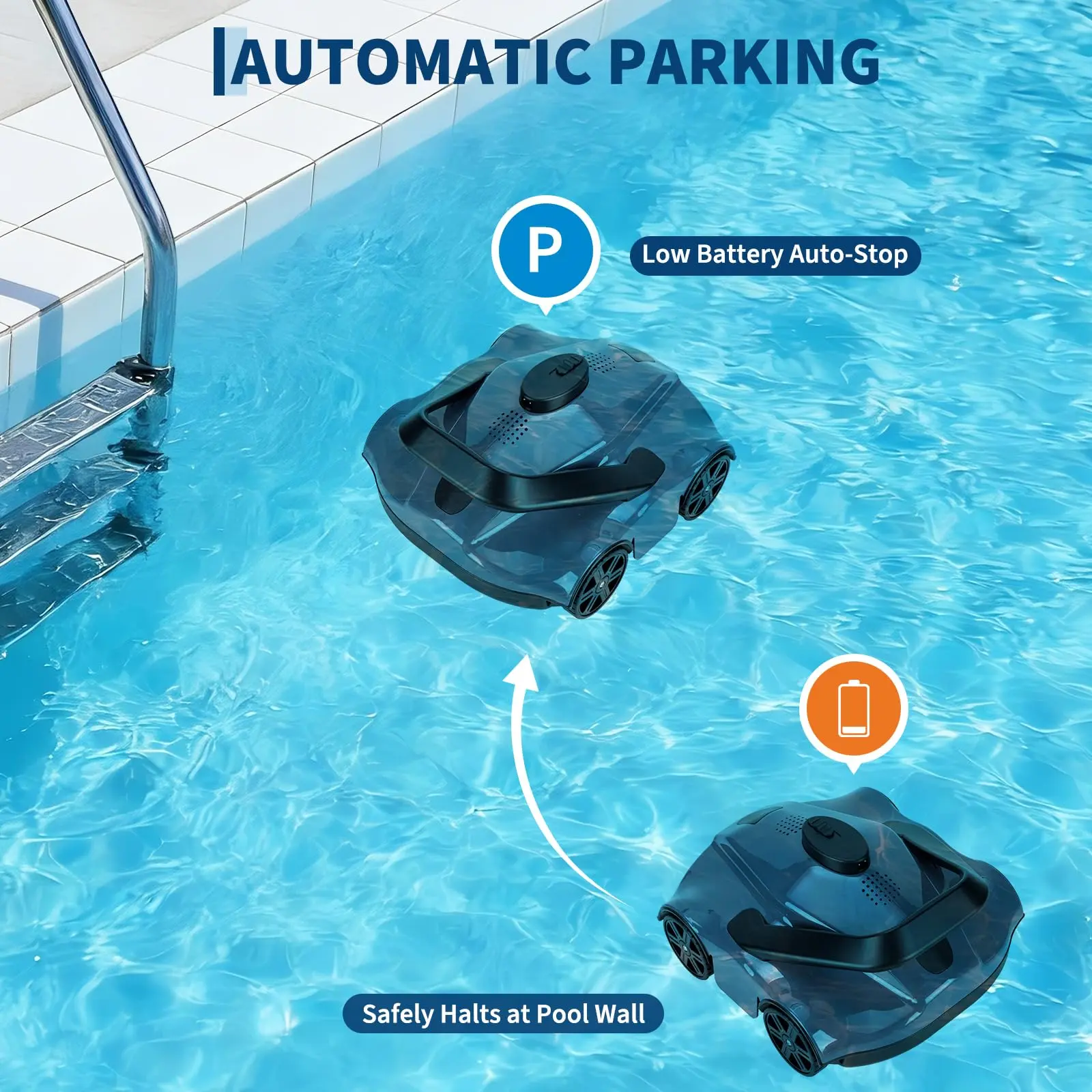 · No Cords, No Hassle with Smart Self-Parking - Enjoy total freedom with this cordless robotic pool cleaner. When the battery runs low, it automatically returns to the pool edge thanks to its self-parking feature, making retrieval quick and effortless.