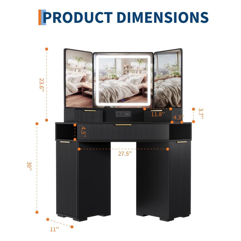 · Built-In Charging Station for Convenience: No more searching for outlets—this makeup vanity desk with mirror and lights includes a built-in charging station, so your hair dryer, phone, and beauty tools stay powered up and ready while you get ready for your day or a night out