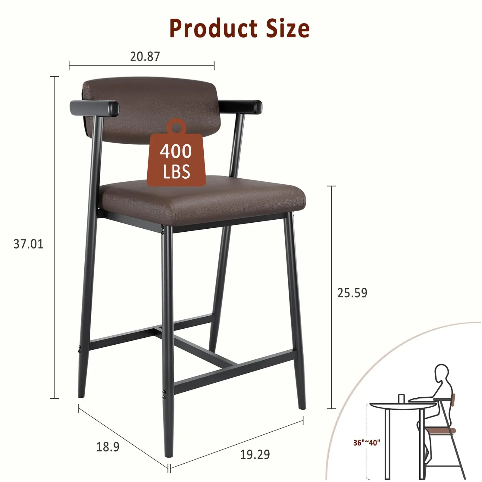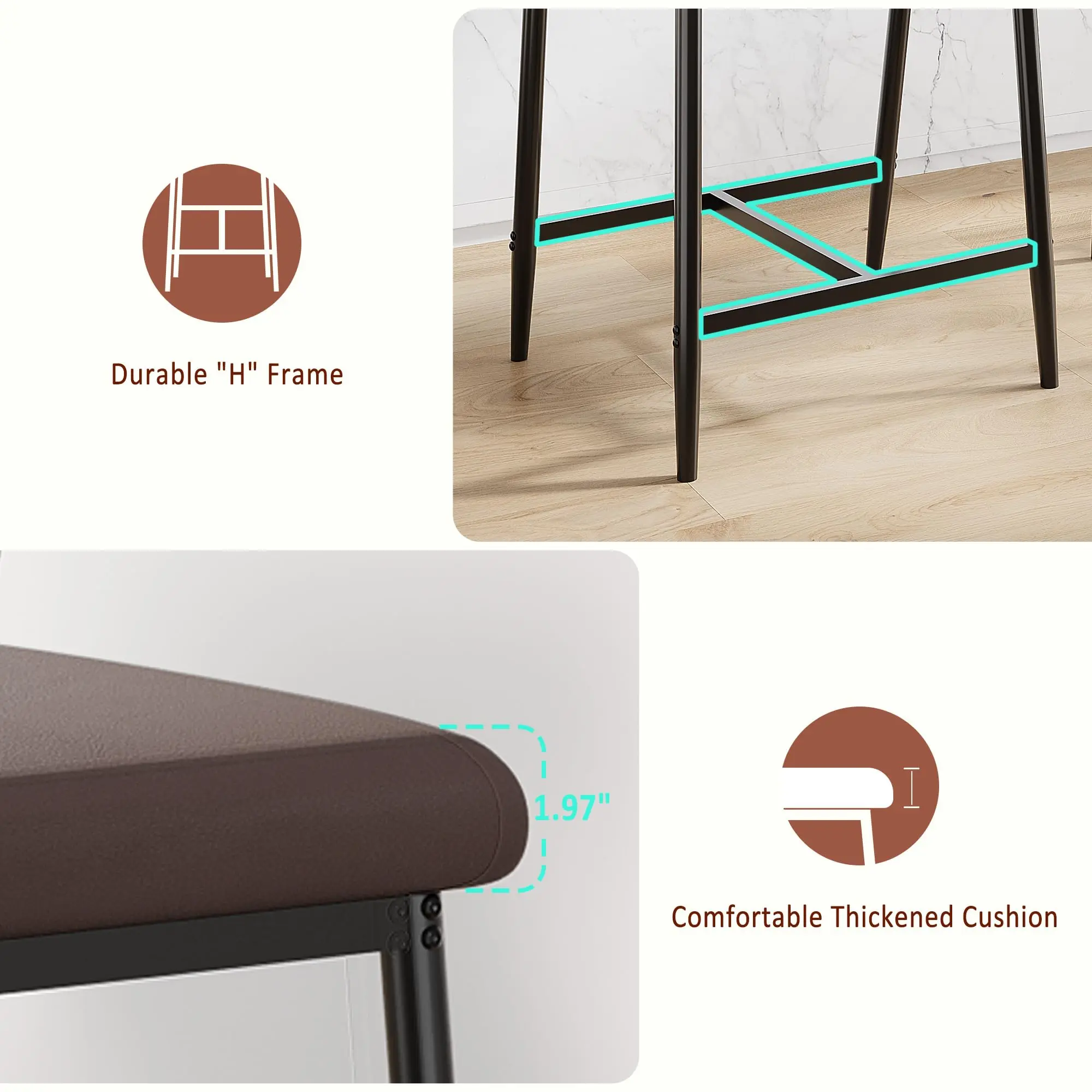 · 2. Engineered Uncompromising Strength & Security: Crafted for enduring use, this kitchen island barstools set of 4 boasts a heavy-duty metal frame capable of supporting up to 400 lbs. Precision dimensions (19.29” L × 18.9” W × 37.01” H, cushion height: 25.59”) guarantee seamless integration with standard counter spaces. The innovative "H" base structure provides exceptional stability and security through strategic reinforcement at critical stress points