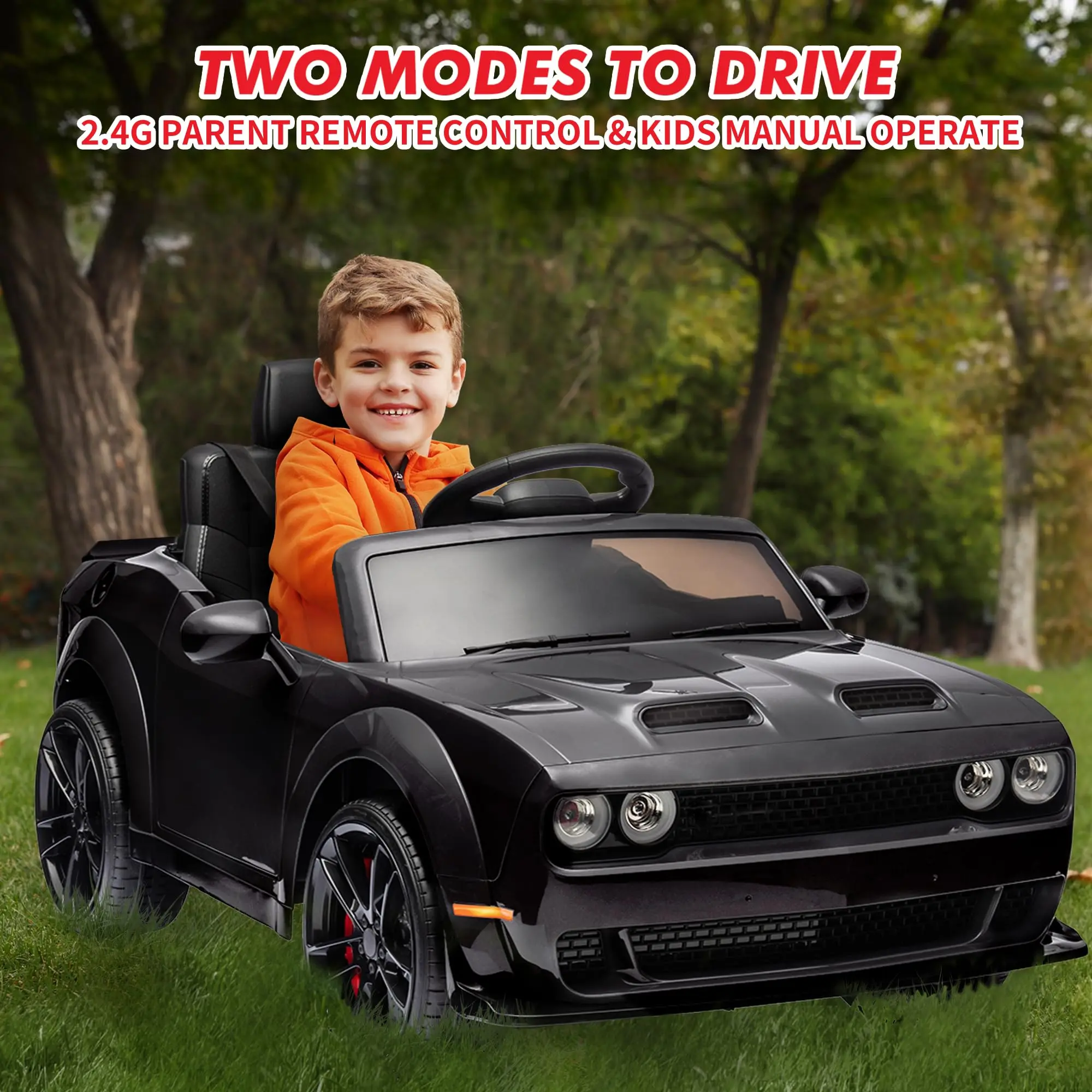 · LUXURIOUS STYLISH DESIGN: This Dodge Challenger electric car allows your child to cruise in style, mimicking a real luxurious car. Supports up to 66 lbs, providing a fun and stylish ride for both boys and girls.