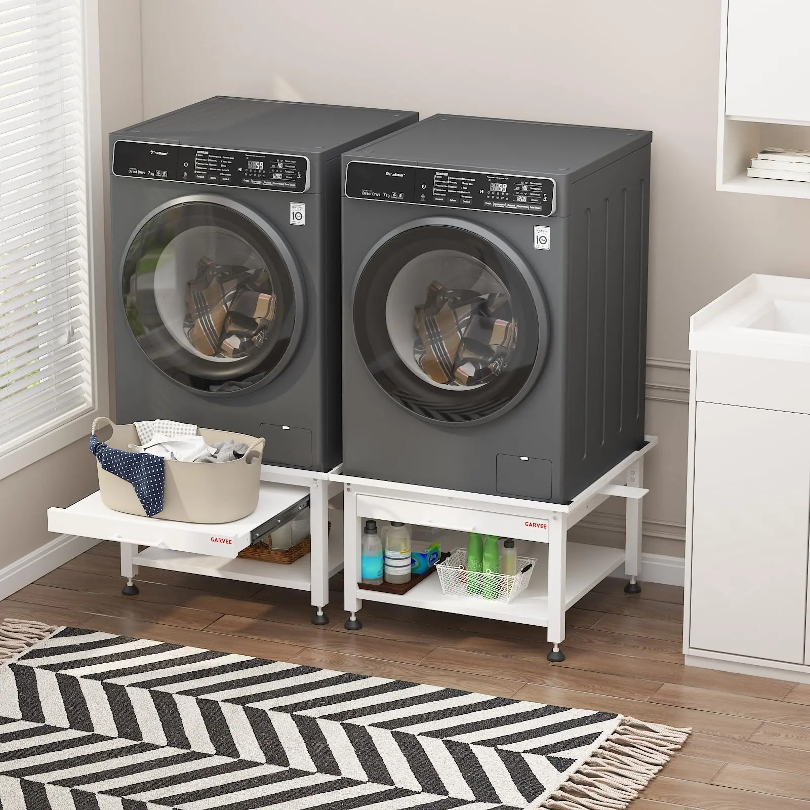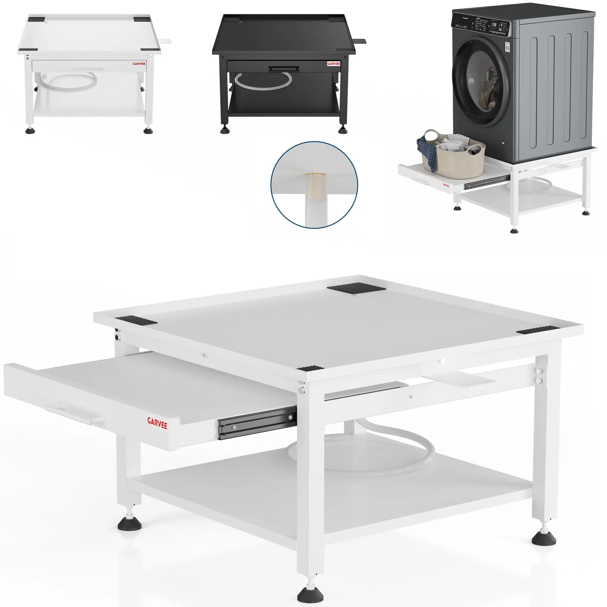 · Built from durable alloy steel, this laundry pedestal supports up to 800–1000 lbs, ensuring stability for washers, dryers, and more.