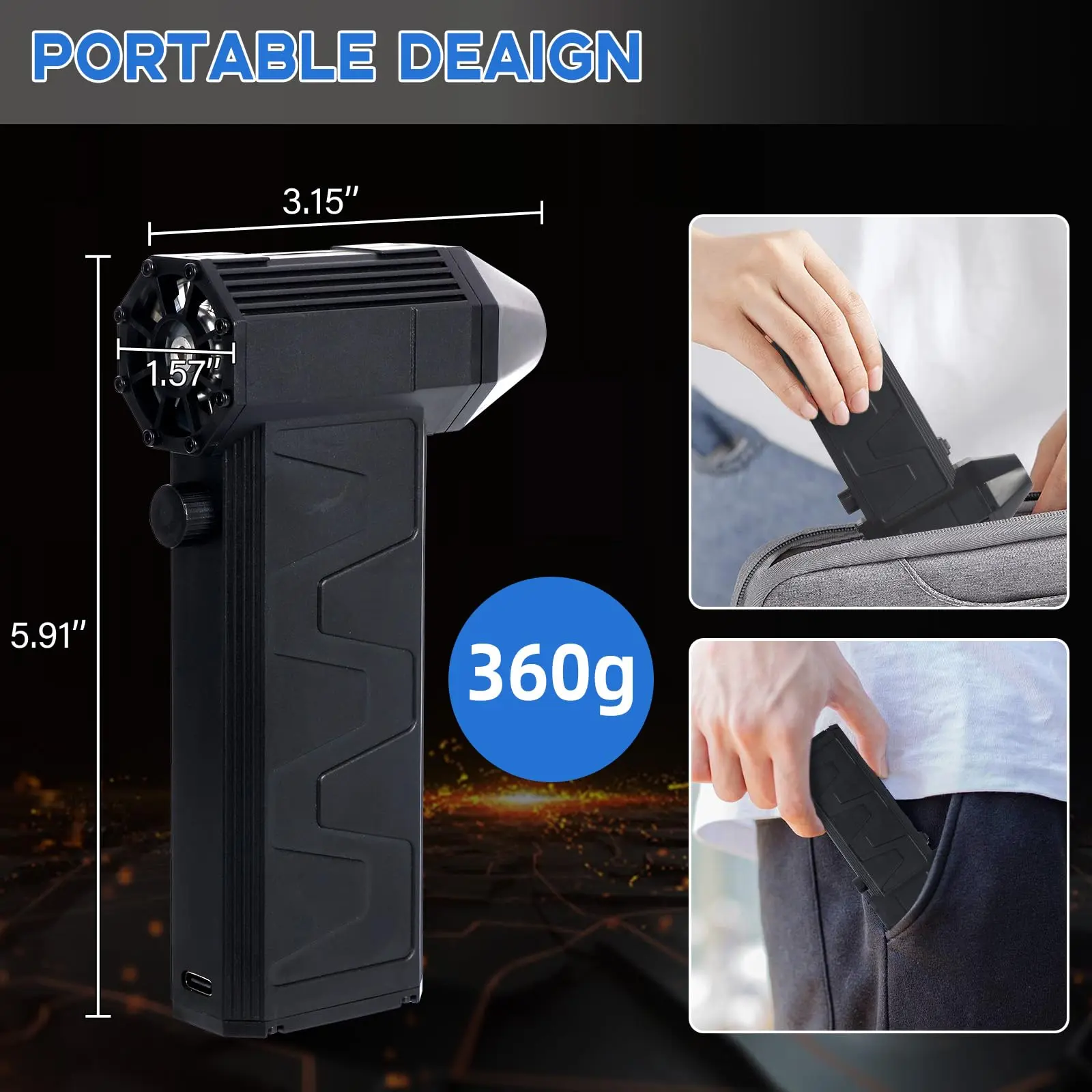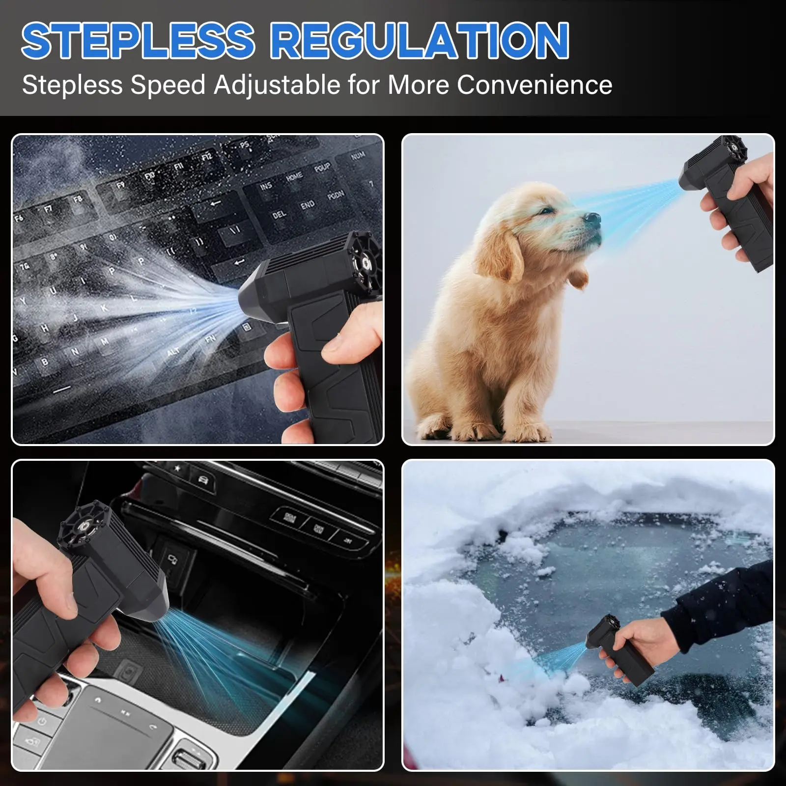 · 🌪️【Fast Charging & Long Battery Life】The air blower comes with a USB Type-C charging cable. It can be fully charged within 4-5 hours.