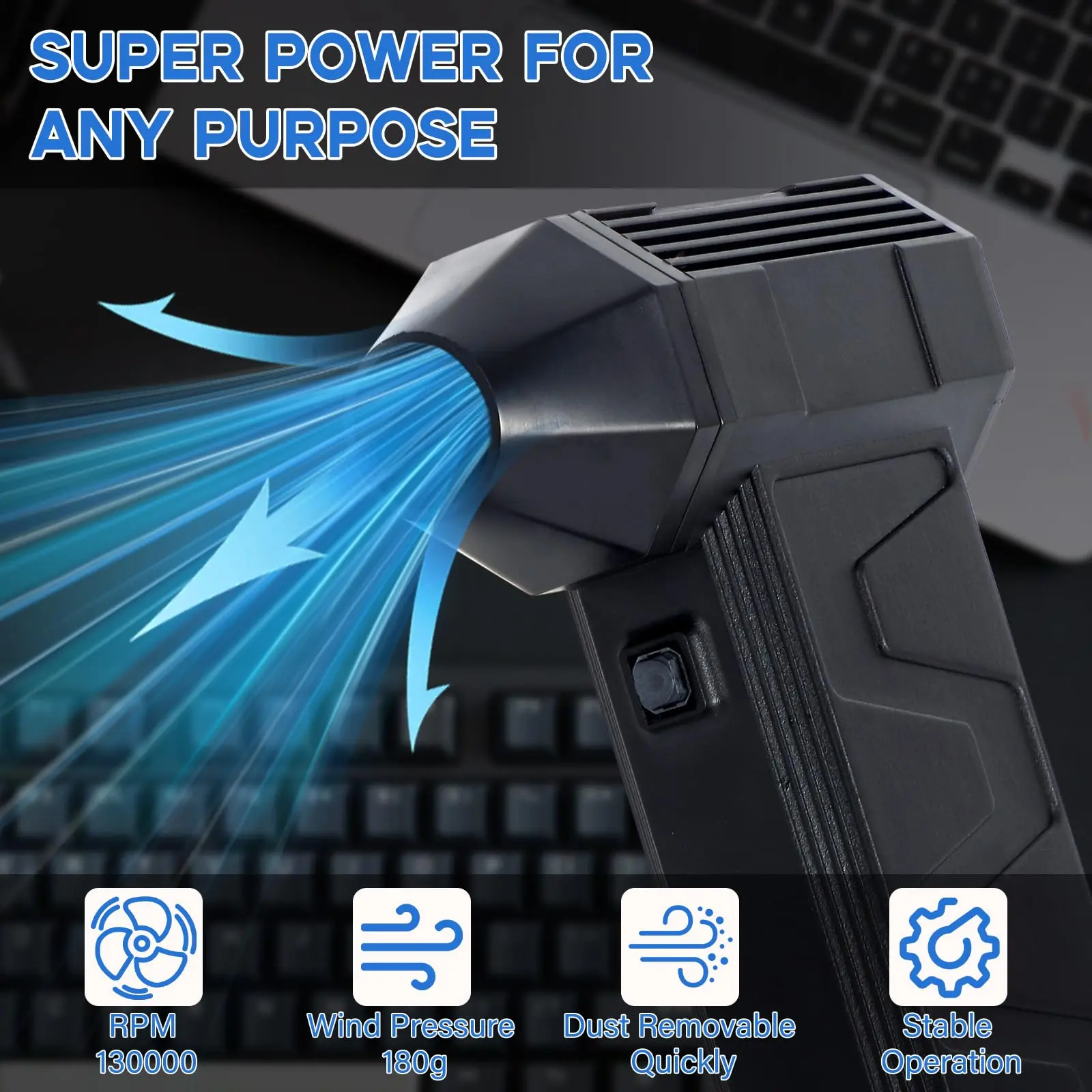 · 🌪️【Like The Storm】This electric air duster uses the newest super powerful motor technology, with a maximum speed of 130,000 RPM and a strong blowing force that delivers an impressive air pressure of 180g. The powerful wind can easily remove dus t from various equipment, as well as dirt in the crevices. It makes a unique and cool gift for Dad, Mom, husbands, boyfriends, and brothers on Father's Day, Mother's Day, birthdays, and Christmas.