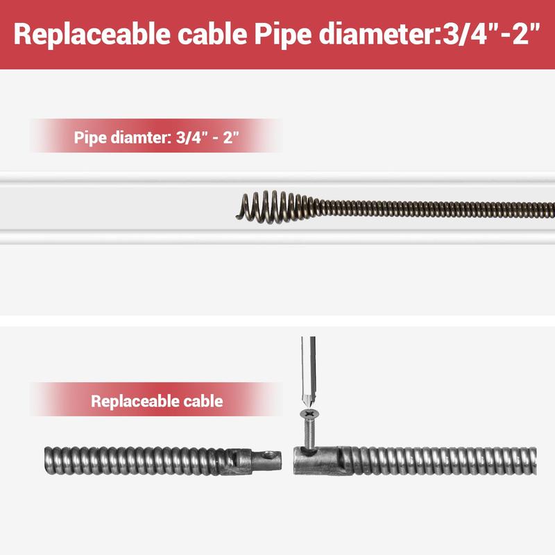 · Electric Drain Auger: This electric drain snake is designed for pipes ranging from 3/4 to 2 in in diameter. Compared to traditional clog-removing tools, our electric drain auger is more efficient and can be reused multiple times, making it an excellent choice for tackling clogged drains.