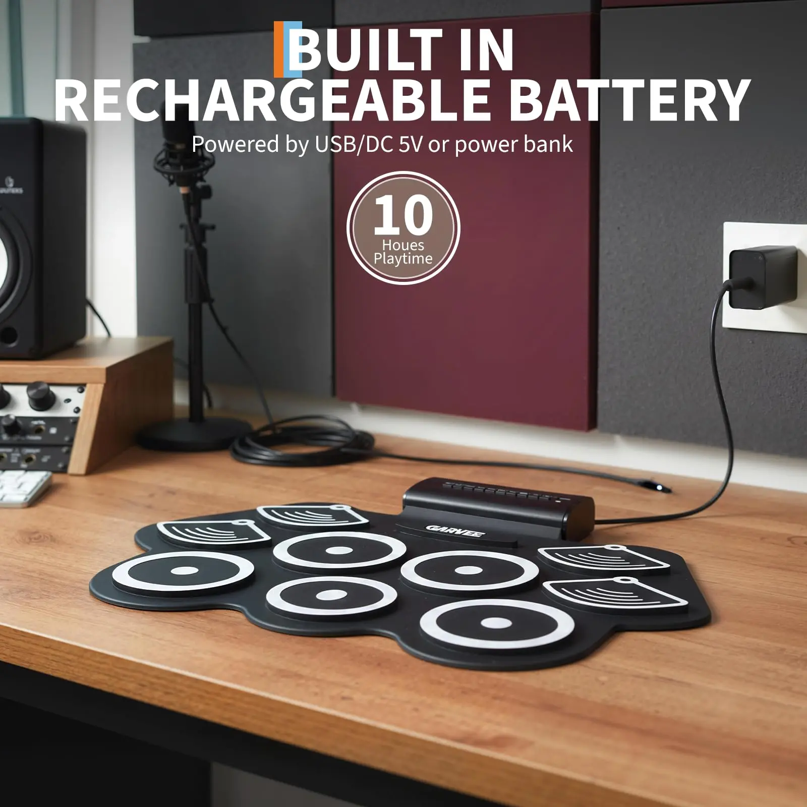 · Ultra-Portable Design: Roll-up electronic drum set weighs under 2 lbs and folds into any backpack, creating a truly portable drum set for bedroom jams, outdoor practice or travel; quick USB recharge keeps the electric drum pad ready wherever inspiration strikes.
