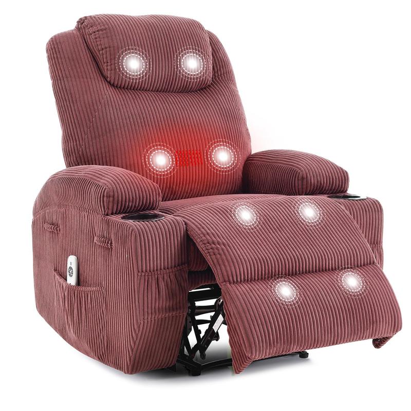 · Corduroy Upholstery with Massage Function:Upholstered in soft corduroy fabric, the chair offers a comfortable seating surface suitable for regular use. It features an 8-point vibration massage system with multiple modes and intensity levels, adjustable via the included remote control to support relaxation needs.