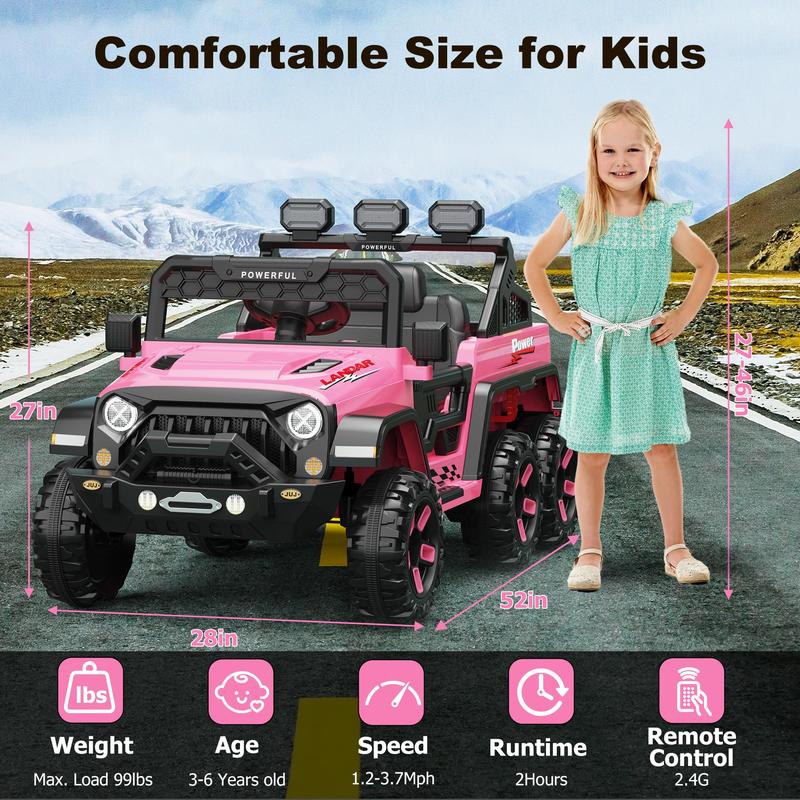 GARVEE Electric Ride-On Car with 6 EVA Wheels and 4WD, 24V Battery Powered Vehicle with Remote Control, 3 Adjustable Speeds, Soft Start, Battery Display, Music, Pink Color