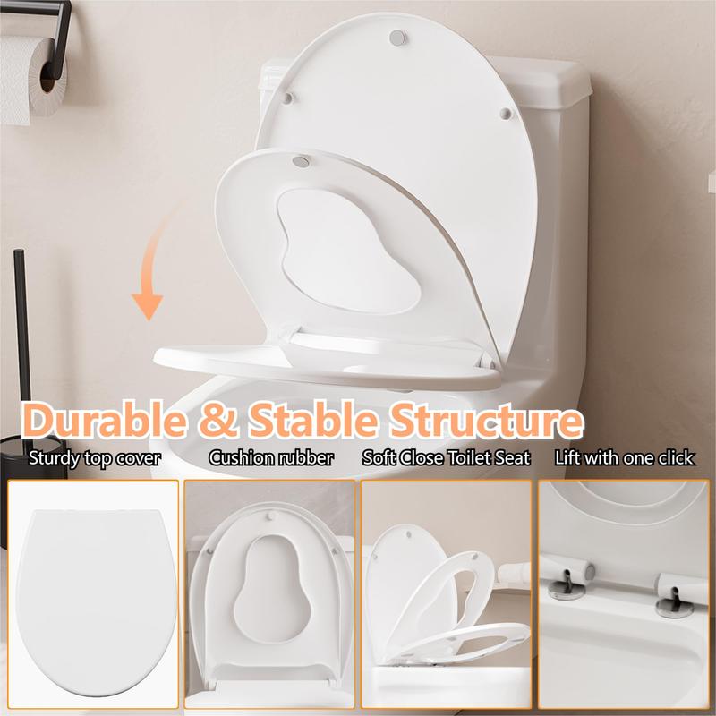 · --Quiet Close Mechanism: Enjoy a peaceful bathroom environment with this quiet close toilet seat and cover. The soft-close feature prevents slamming and protects fingers from pinching, making it ideal for family use