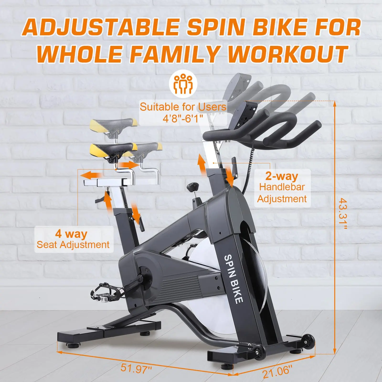 · 【Personalized Fit Exercise Bike】This exercise bike with 4-ways adjustable seat and 2-ways handlebar to fit users with different heights. The toe-caged pedals are designed with adjustable straps, fit for different size feet well. All family members can join in the exercise.