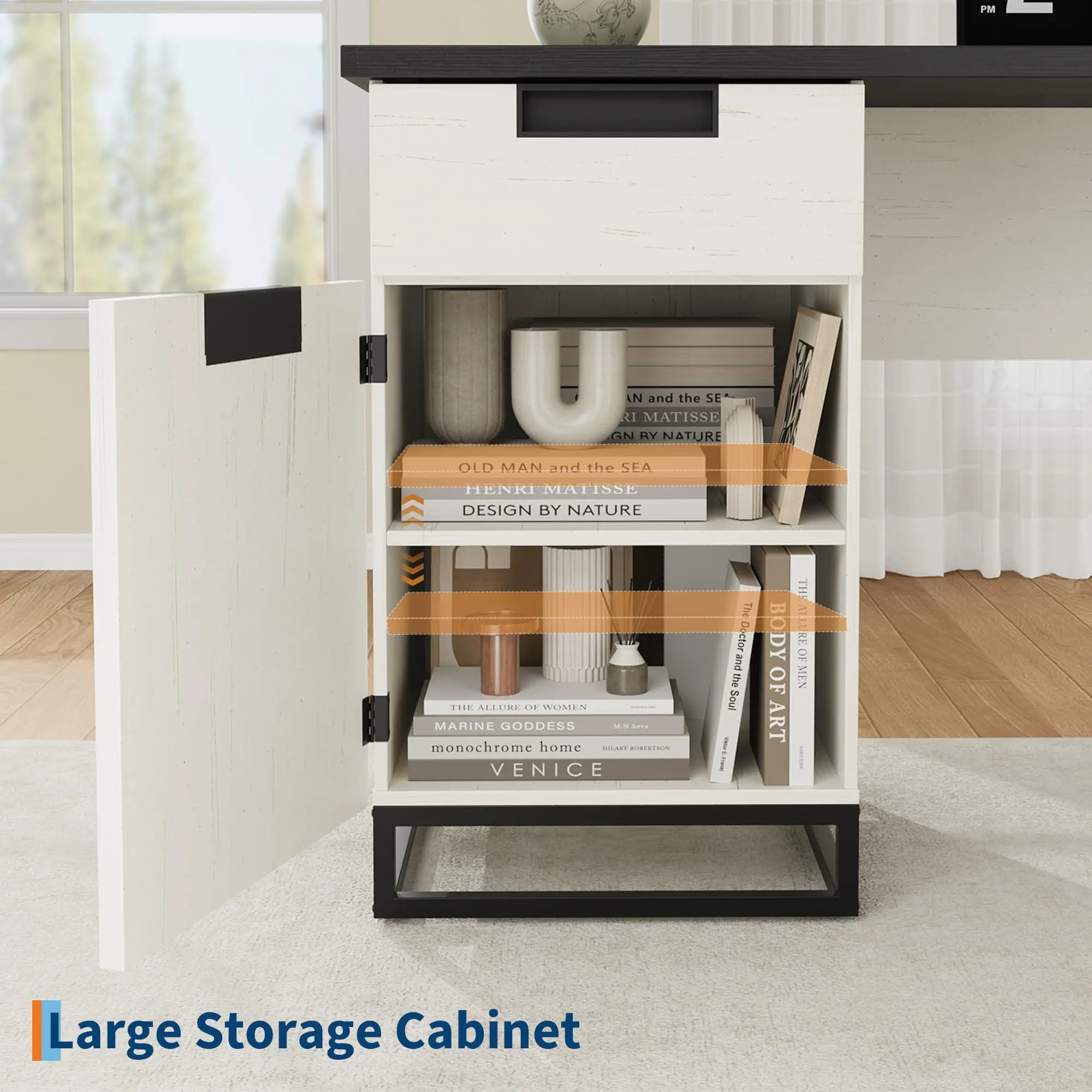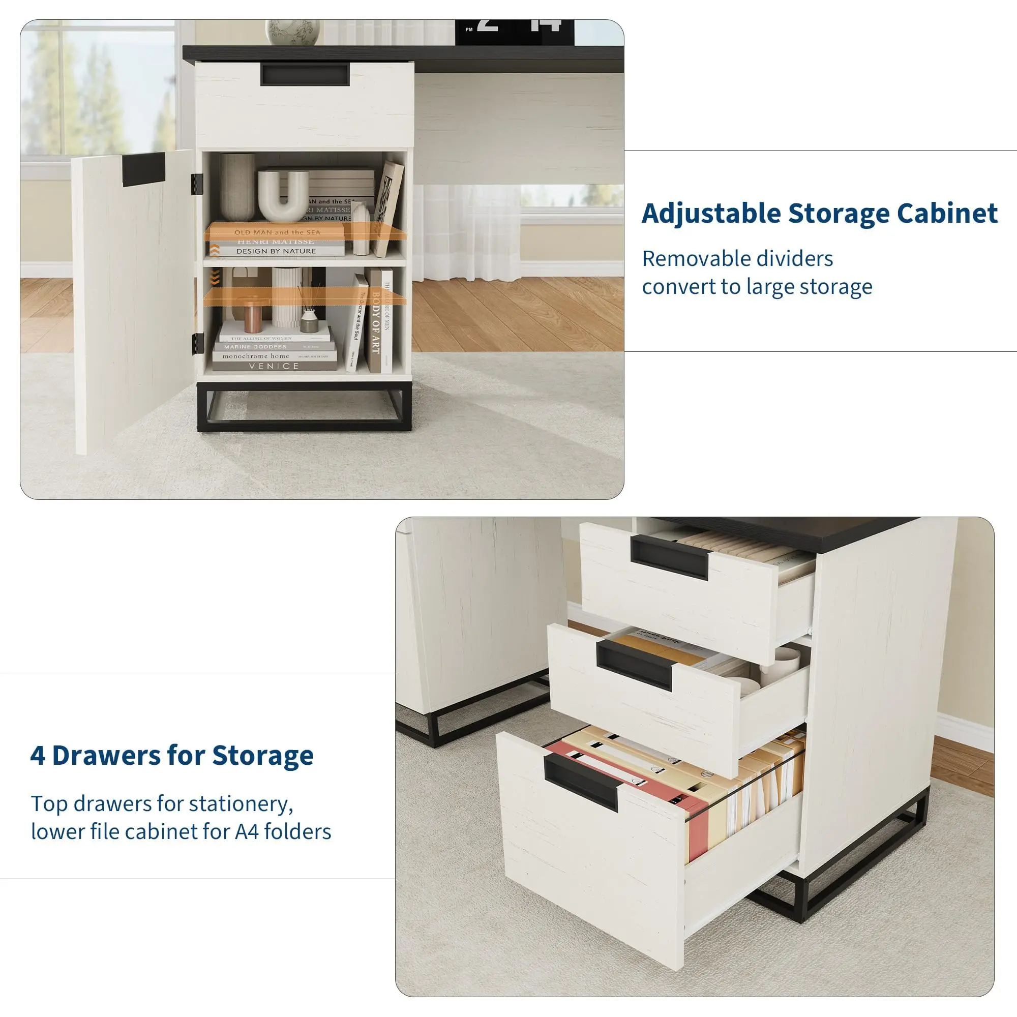 · [Plenty of Storage Space] With three roomy drawers, one letter-sized file drawer, and a large cabinet that has an adjustable shelf, this office desk is equipped—offering ample storage. For organizing documents, stationery, decorations, and books, it works well, ensuring your computer table stays neat and tidy