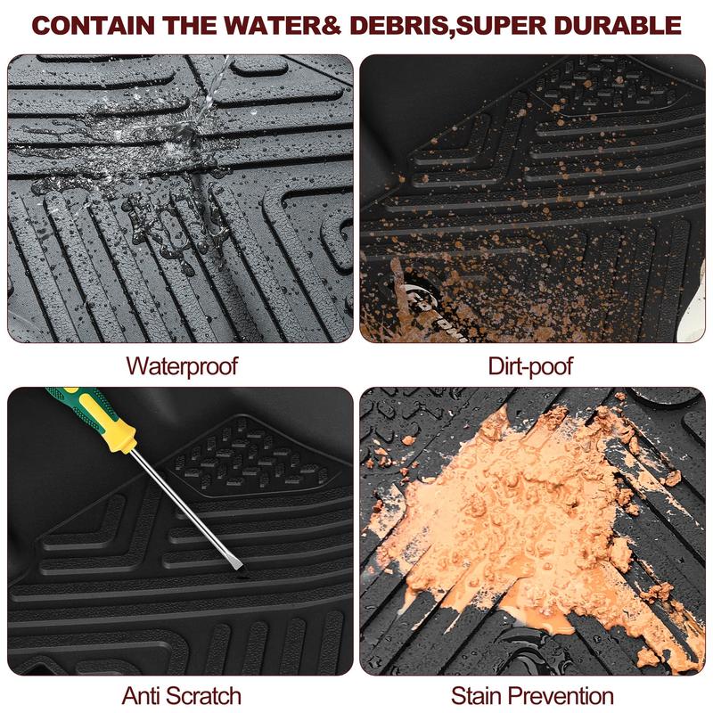 · DURABLE TPE MATERIALS: The floor liners are crafted from premium, non-toxic, and odorless 100% TPE material, making them resistant to wear and dirt, easy to clean, and ensuring your safety even in extremely hot weather conditions