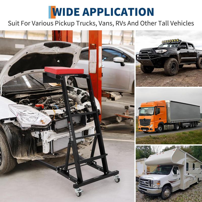 · Heavy-Duty Automotive Creeper for Truck Repairs: Engineered with adjustable height (45.7"-66.3") and 3 tilt angles to optimize positioning under lifted vehicles like jeeps, RVs, and pickups. Maintain ergonomic posture during transmission work or exhaust system repairs without neck strain.