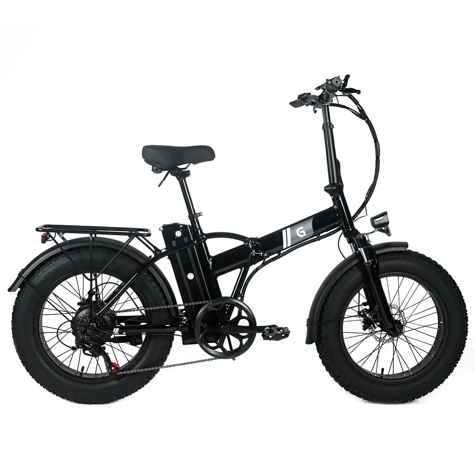 · Excellent Grip and Stability: The bike is fitted with 20" x 4" fat tires, providing excellent grip and stability across diverse terrains. It ensures a smooth ride on city streets as well as rugged trails. The SHI MANO RD-TY200 professional derailleur allows for seamless gear shifts, enhancing the overall cycling experience, while the disc brakes deliver strong and reliable stopping power.