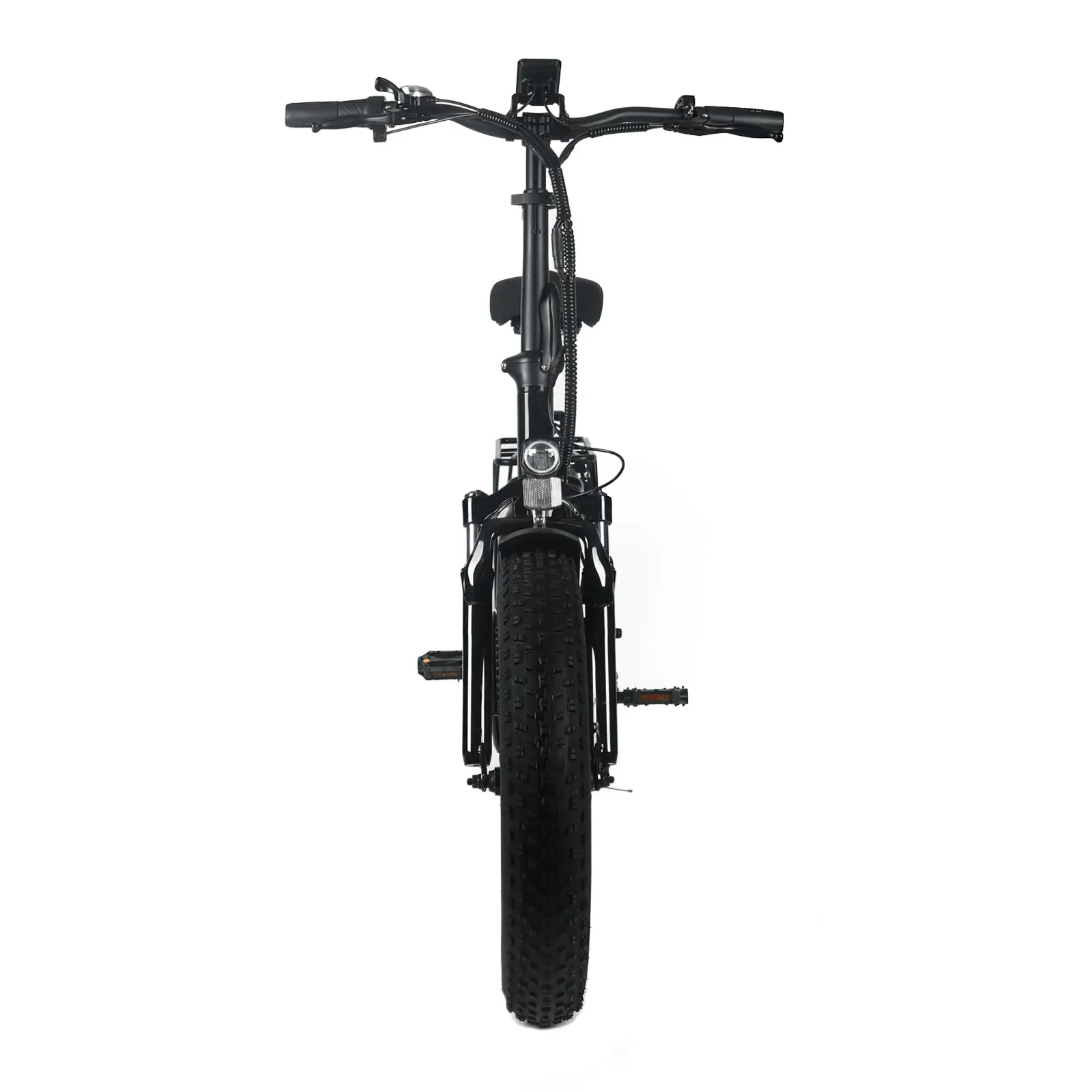 · Sleek and Lightweight Design: This folding electric bicycle is crafted from lightweight aluminum alloy, weighing just 80.36 lbs, making it ideal for both commuting and leisure rides. It features a powerful battery integrated for a stylish look and improved safety. The front fork's shock absorption system ensures a smooth ride, and the front and rear LED lights enhance visibility in low-light conditions.