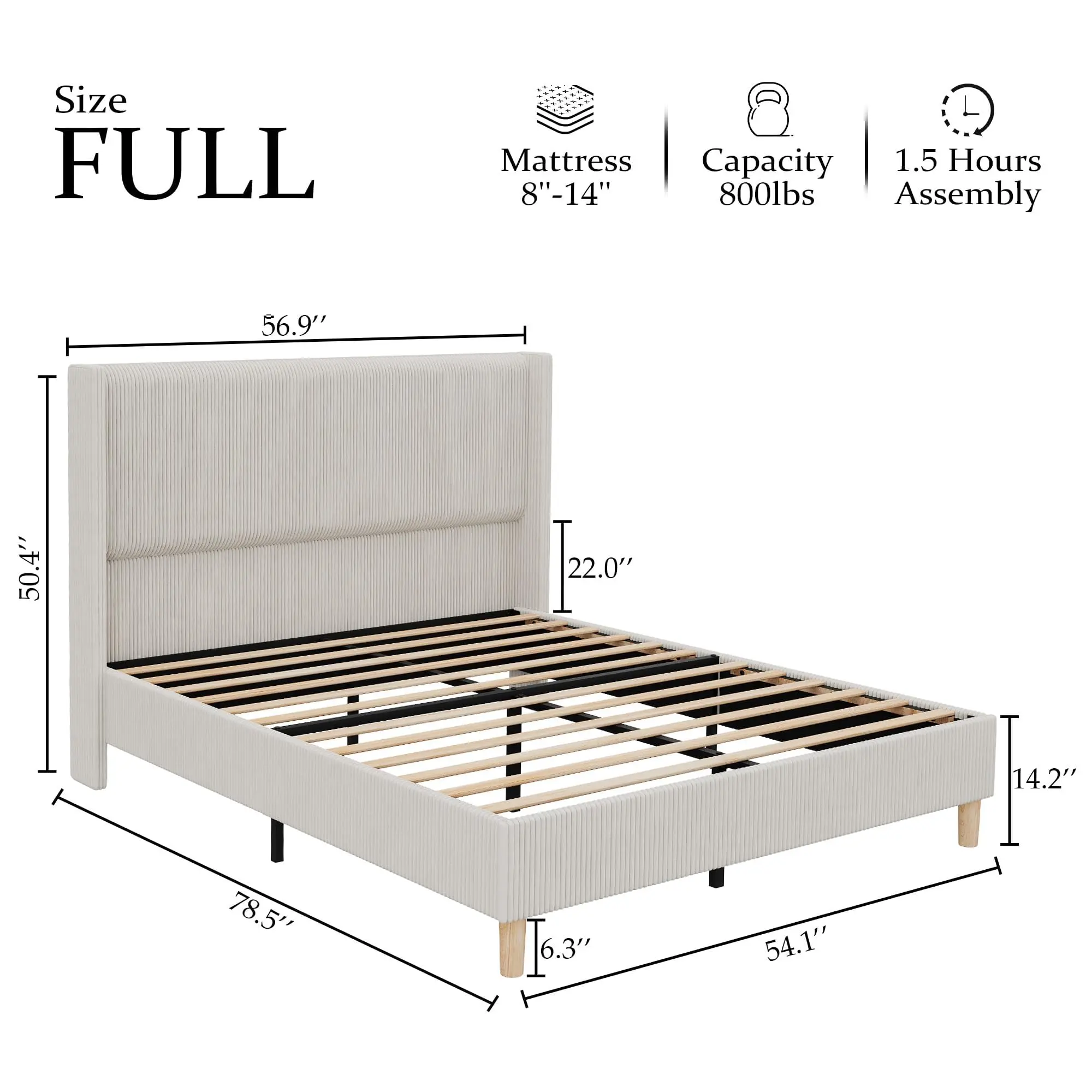 · Comfortable Fabric: Corduroy soft bed frame upholstered with sponge and corduroy fabric which give a soft touch and refined look. Water-resistant and easy to clean for daily living.