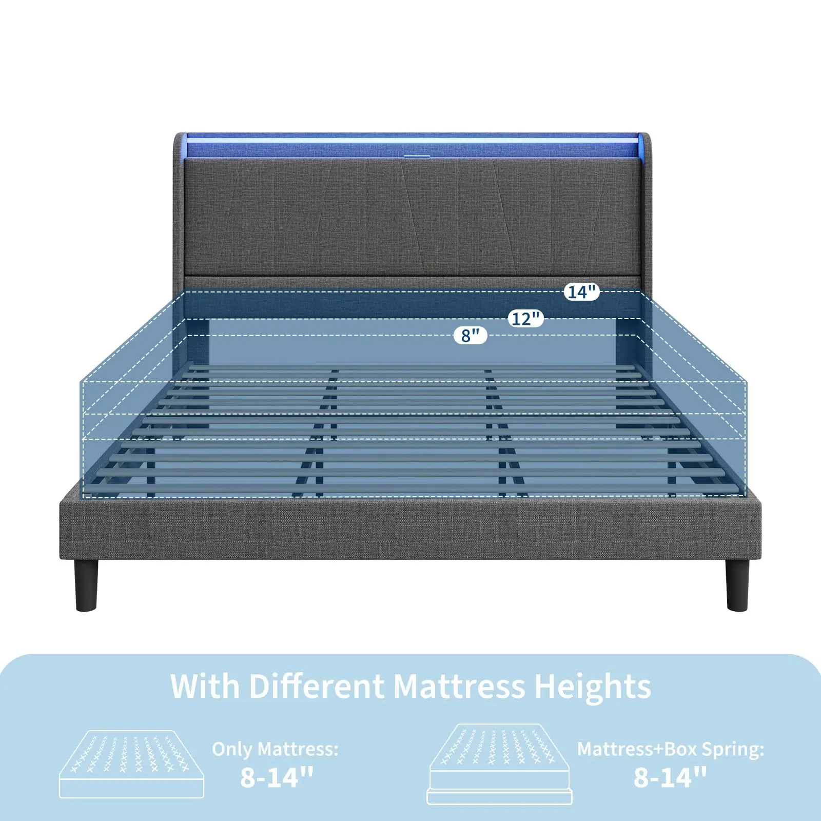 · Integrated Charging Hub: Features a built-in power cord and four USB charging ports seamlessly incorporated into the headboard. This centralized power station keeps all electronic devices fully charged while maintaining a clean, wire-free bedroom environment.