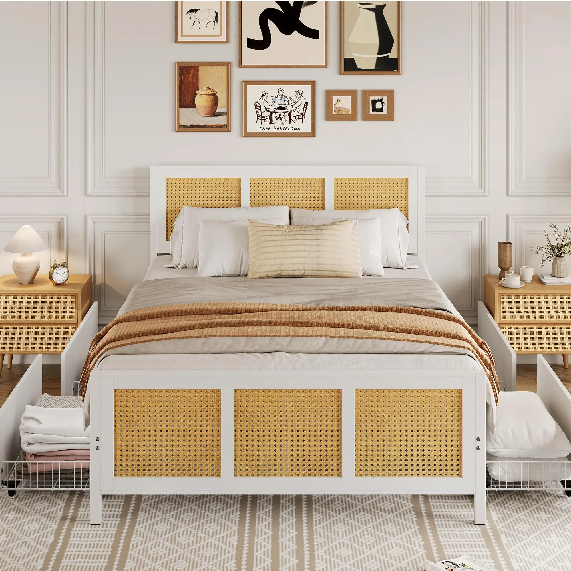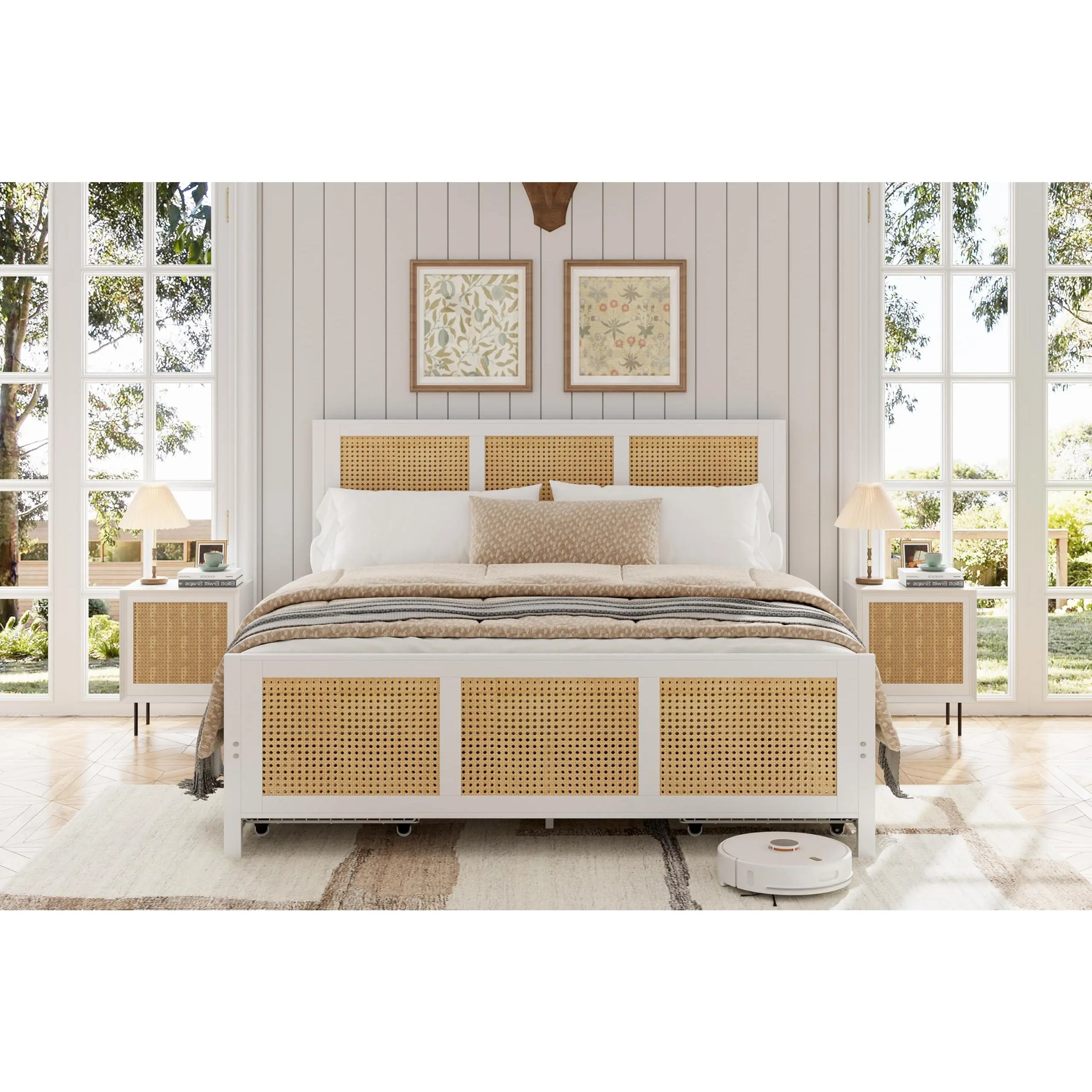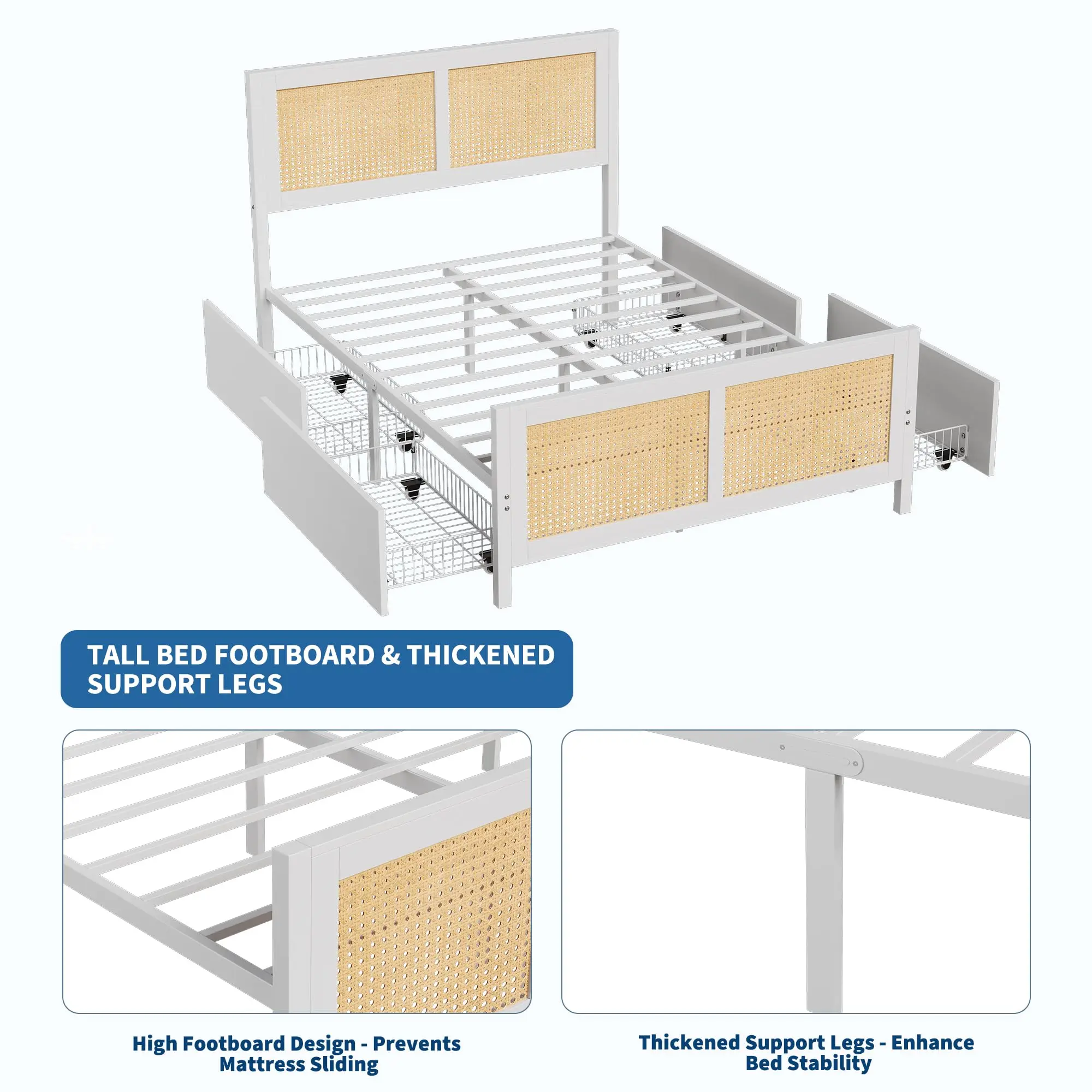 · Boho Rattan & Metal Design – Crafted with natural rattan accents, sturdy wood, and a painted metal frame, this bed combines bohemian charm with modern durability to elevate any bedroom decor.