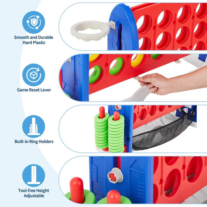 · Classic Four-Second Chess Playing: Double the fun of family interaction: Extra large size Four-Second Chess Game Board, players take turns to throw balls, and the first person to connect to 4 balls of the same color (horizontal, vertical, and oblique) wins! The rules are simple but full of strategies, suitable for 2-person battles or team competitions, promoting parent-child interaction and the development of children's logical thinking.