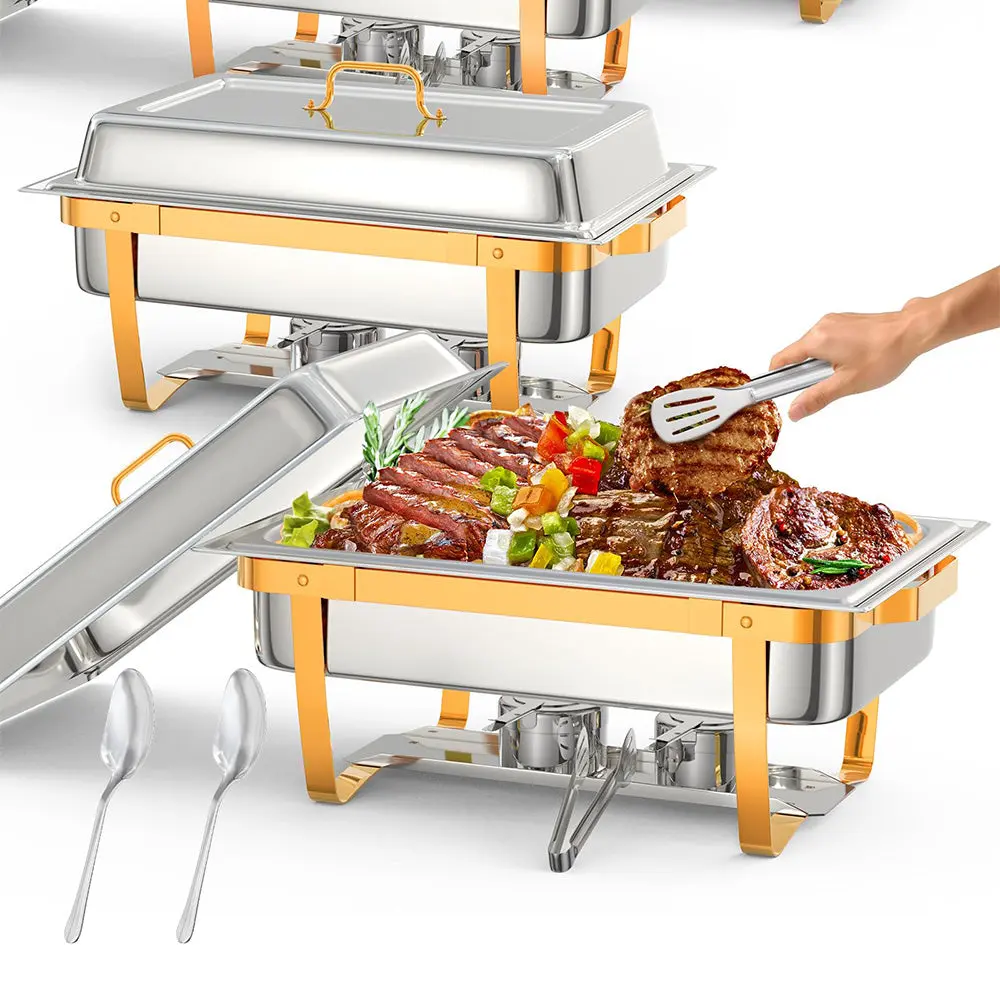 · 【Package Component Included】- 4 x Rectangle Lids; 4 x Food Pans; 4 x Water Pans; 4 x Chafing Dish Frames; 8 x Fuel Cans; 2 x Spoon; 2 x Tweezer