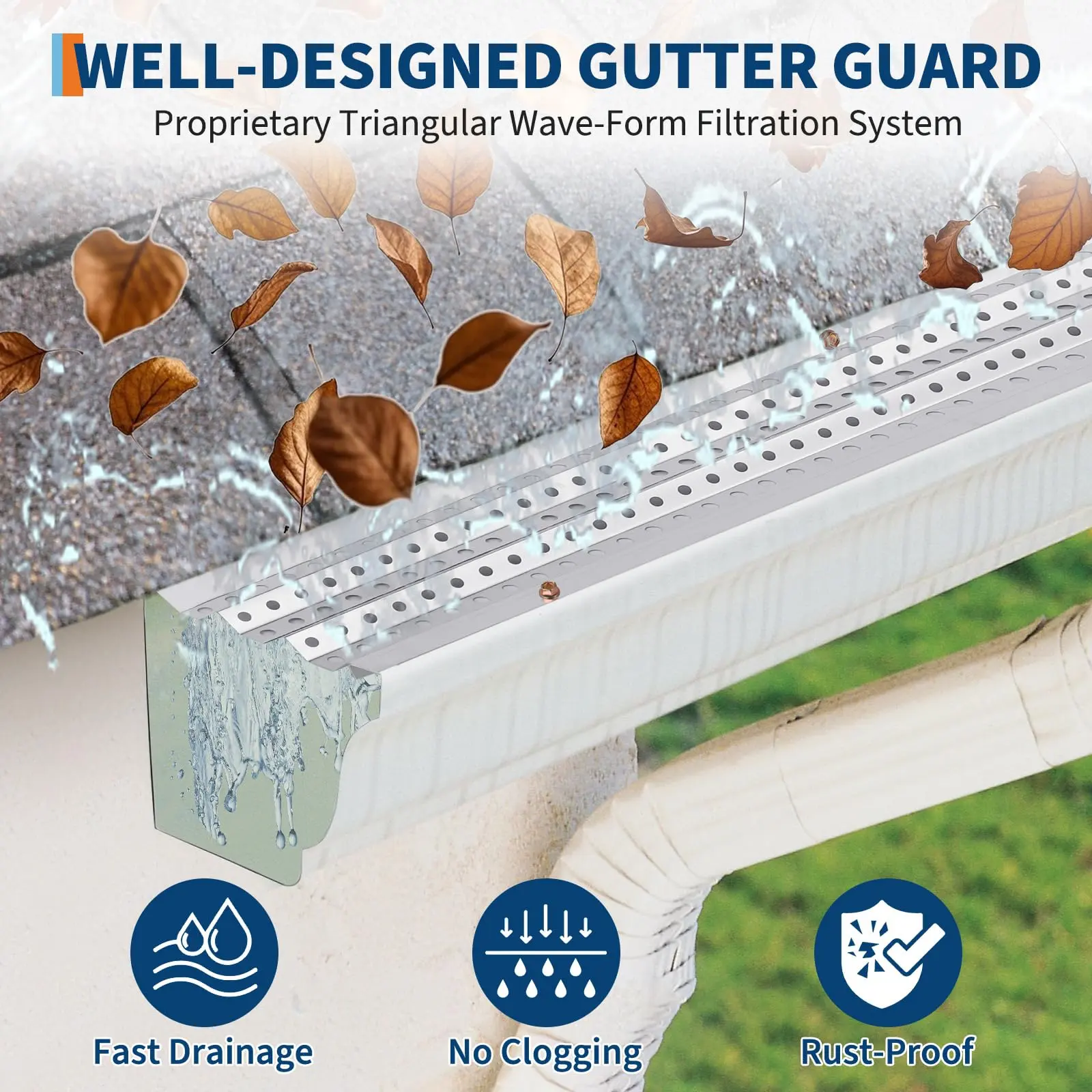 · 【Triangular Undulating Design】Our gutter guards feature a triangular double-peak design that lifts and suspends leaves and debris above the guard surface, preventing adhesion. Compared to non-triangular raised designs, this more effectively prevents various debris from clinging to the drainage mesh while enhancing airflow. Over time, breezes can easily blow away dried debris.