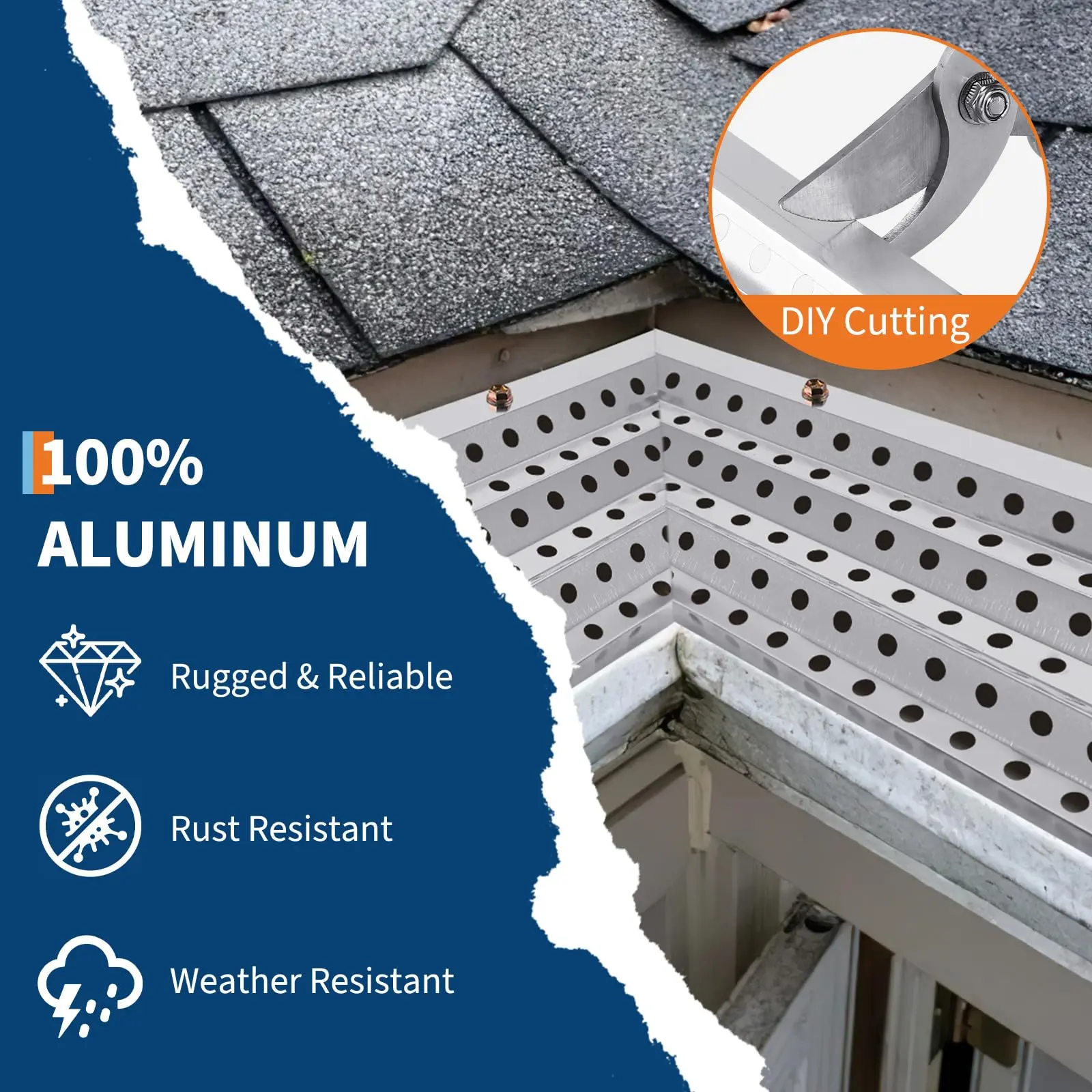 · 【High Strength & More Durable】This gutter cover is made of 0.02" / 0.5 mm thick (industrial) 100% Aluminum, with anti-rust coating protection on the surface, combined with a triangular force-bearing stable design, preventing rust and warping. It can withstand extreme rainfall, snow loads, and strong winds, providing unparalleled strength and durability.