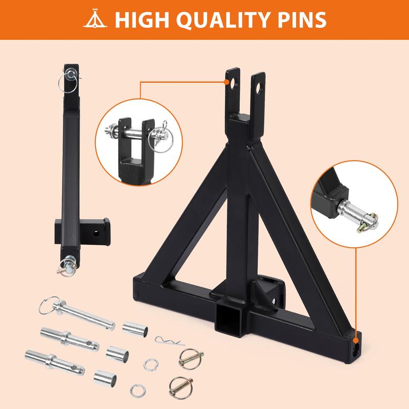 Β· γDurable and SturdyγThe three point quick hitch category 1 is made of heavy duty steel construction. The triangular design ensure stability of the trailer hitch receiver. The trailer receiver is coated with high-quality black powder finish to prolong the product's lifespan and keeping it in prime condition, more durable, rust-proof and corrosion-proof.