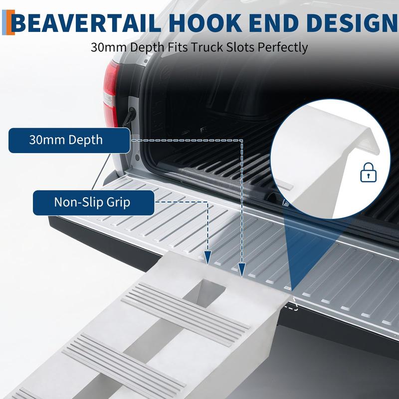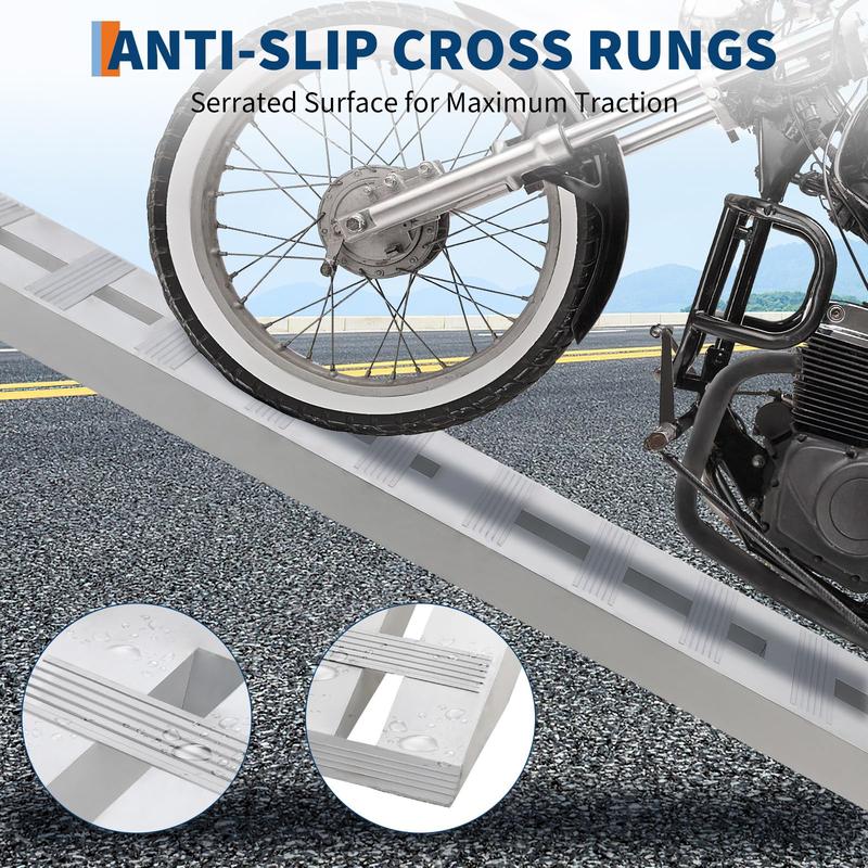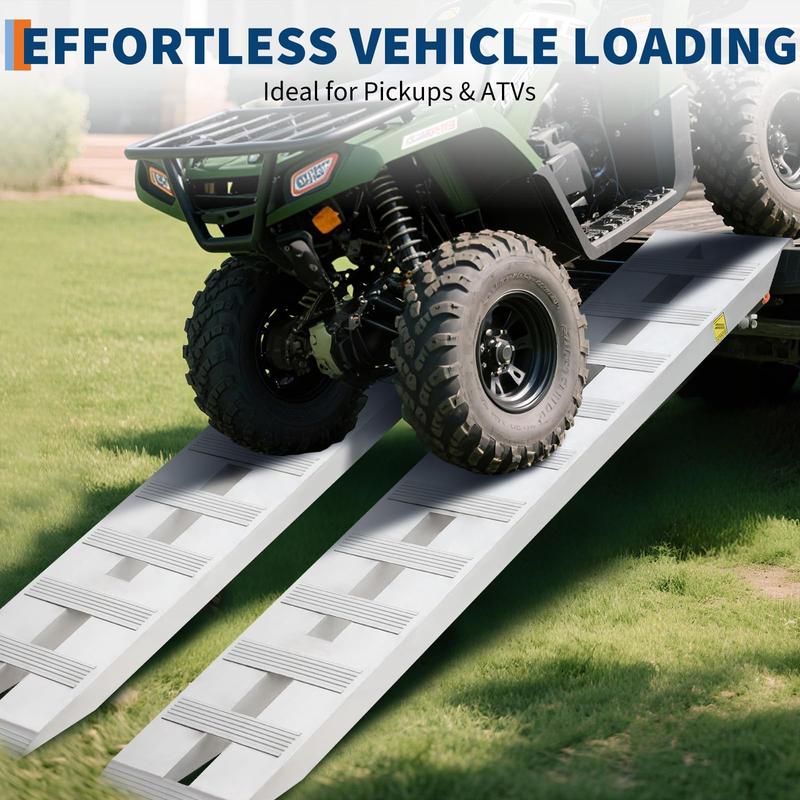 · Maximum Stability and Anti-Slip Safety: Features a non-detachment top hook system that securely locks to trailer edges, plus deeply textured traction surfaces on both ramps and hooks to prevent slippage during loading