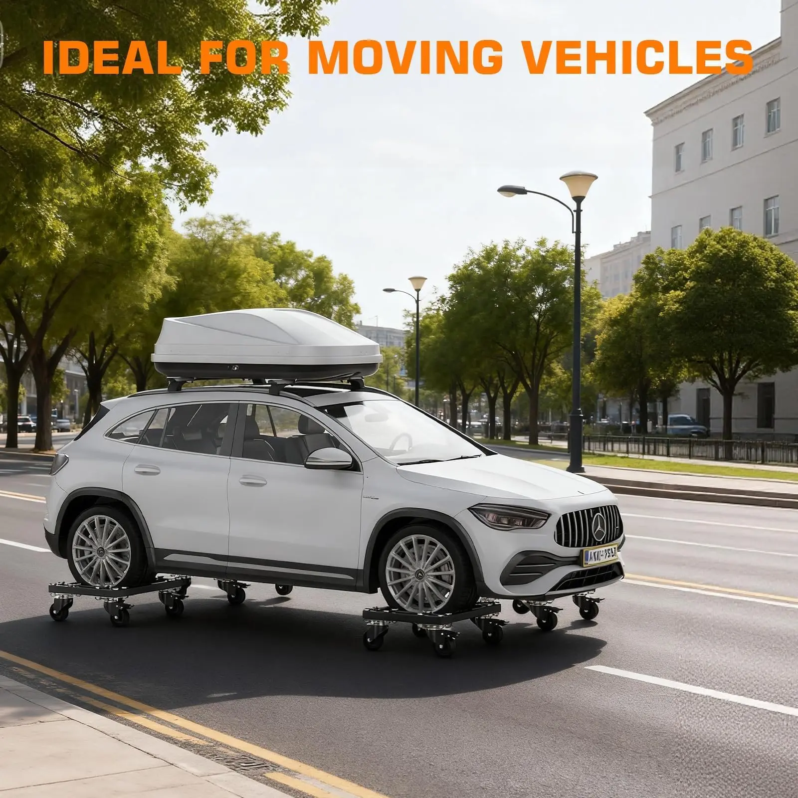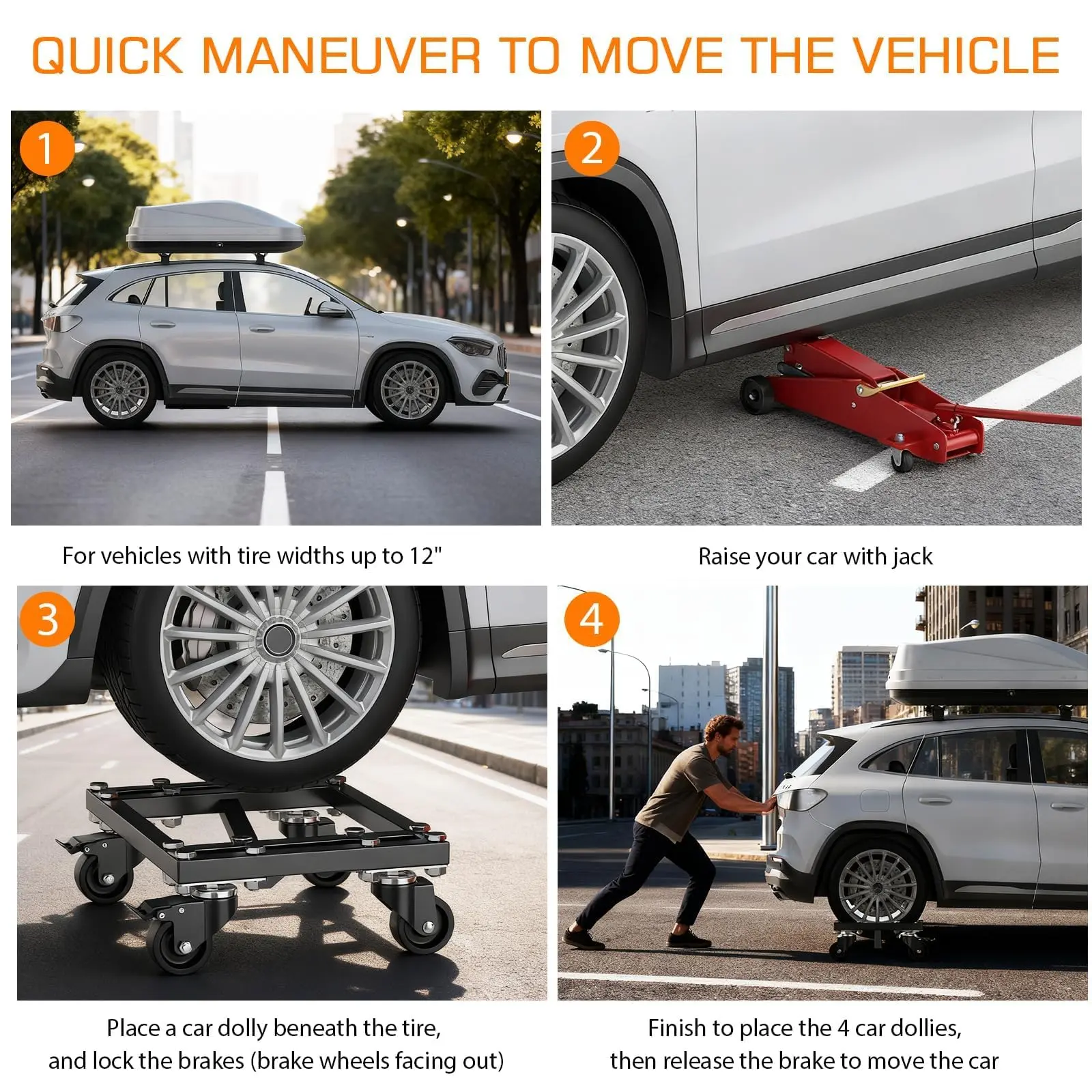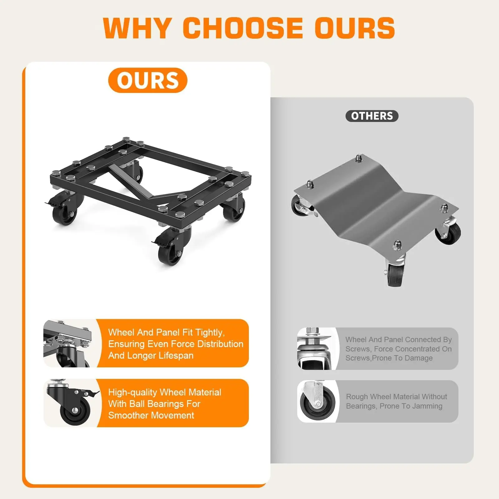 · Versatile Applications for Daily Use: Designed for home garages, professional auto shops, car shows, and storage facilities, these dollies streamline tasks like tire rotations, equipment repositioning, or seasonal vehicle storage. Built with industrial-grade materials, they withstand daily wear and tear while maintaining long-lasting performance.