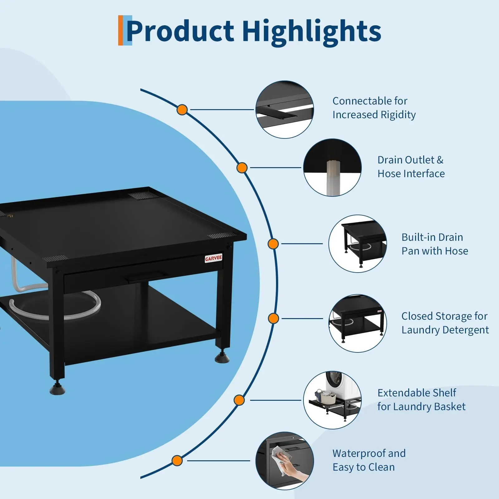 · Built-In Leak Protection: Integrated drain pan and hose provide reliable defense against leaks, keeping your floors safe and laundry area tidy.