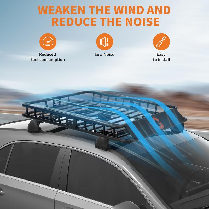 · [Safe & Secure] The reinforced base rails and side bars keep your cargo protected during travel. Featuring a steel wind fairing to shield items from wind exposure and reduce drag for a smoother ride.