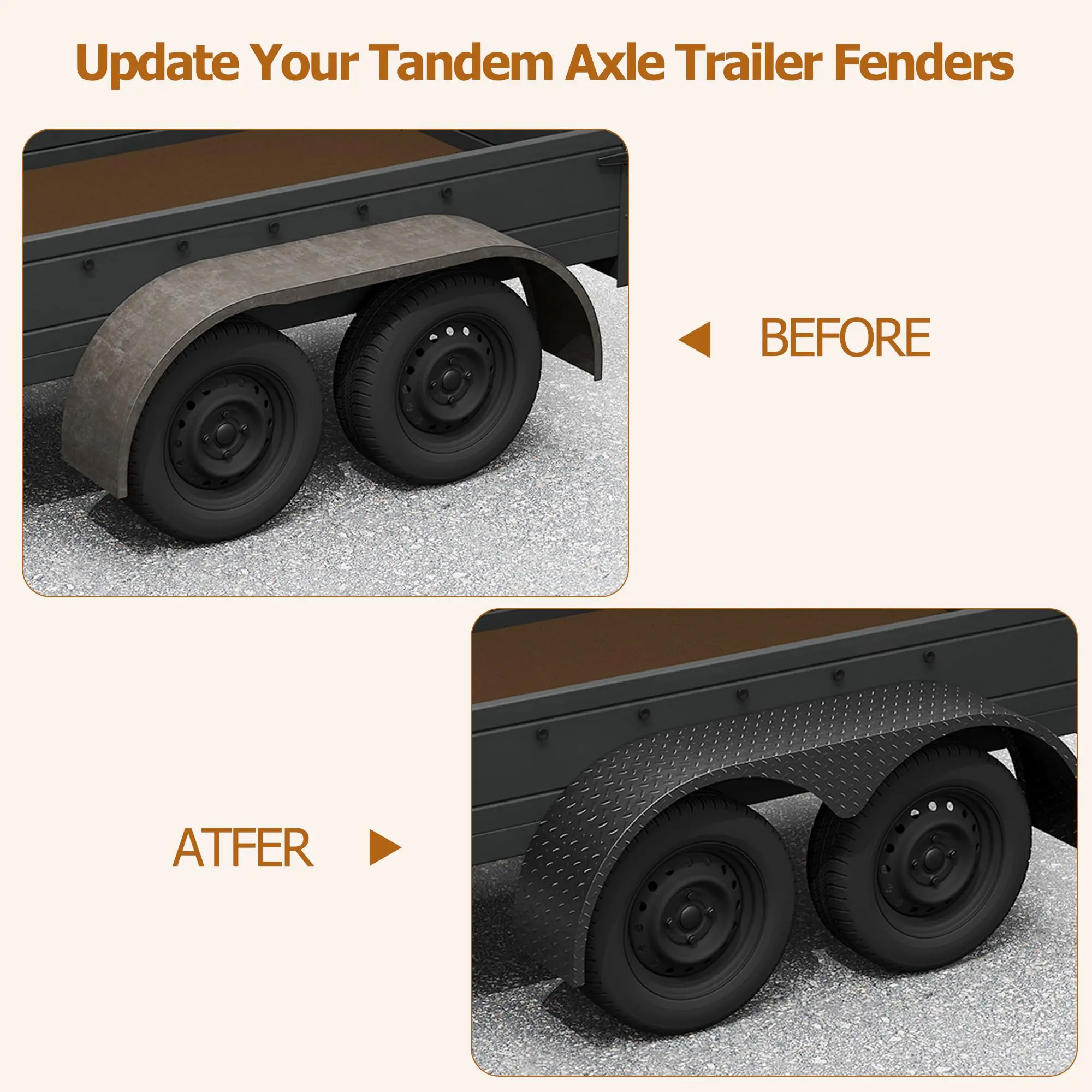 · 【Versatile Applications】Our tandem axle fenders are suitable for a variety of trailers, including boat trailers, utility trailers, and recreational vehicle (RV) trailers, making them a versatile addition to your hauling setup. Upgrade your trailer’s functionality and appearance with these stylish and practical fenders.