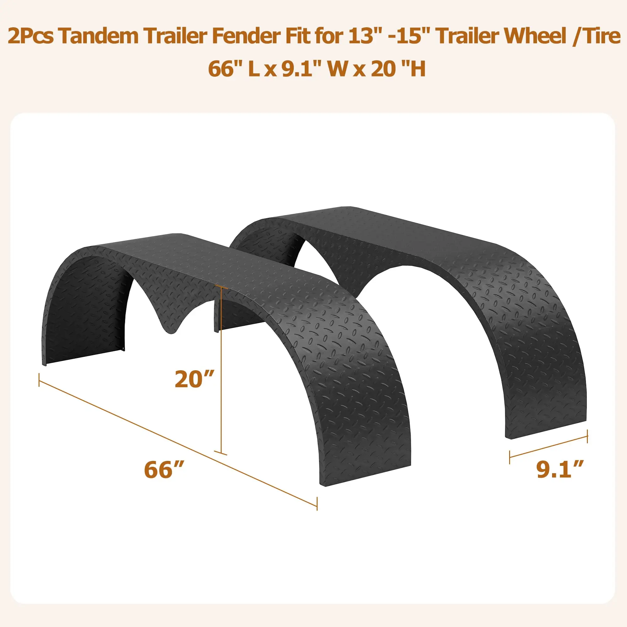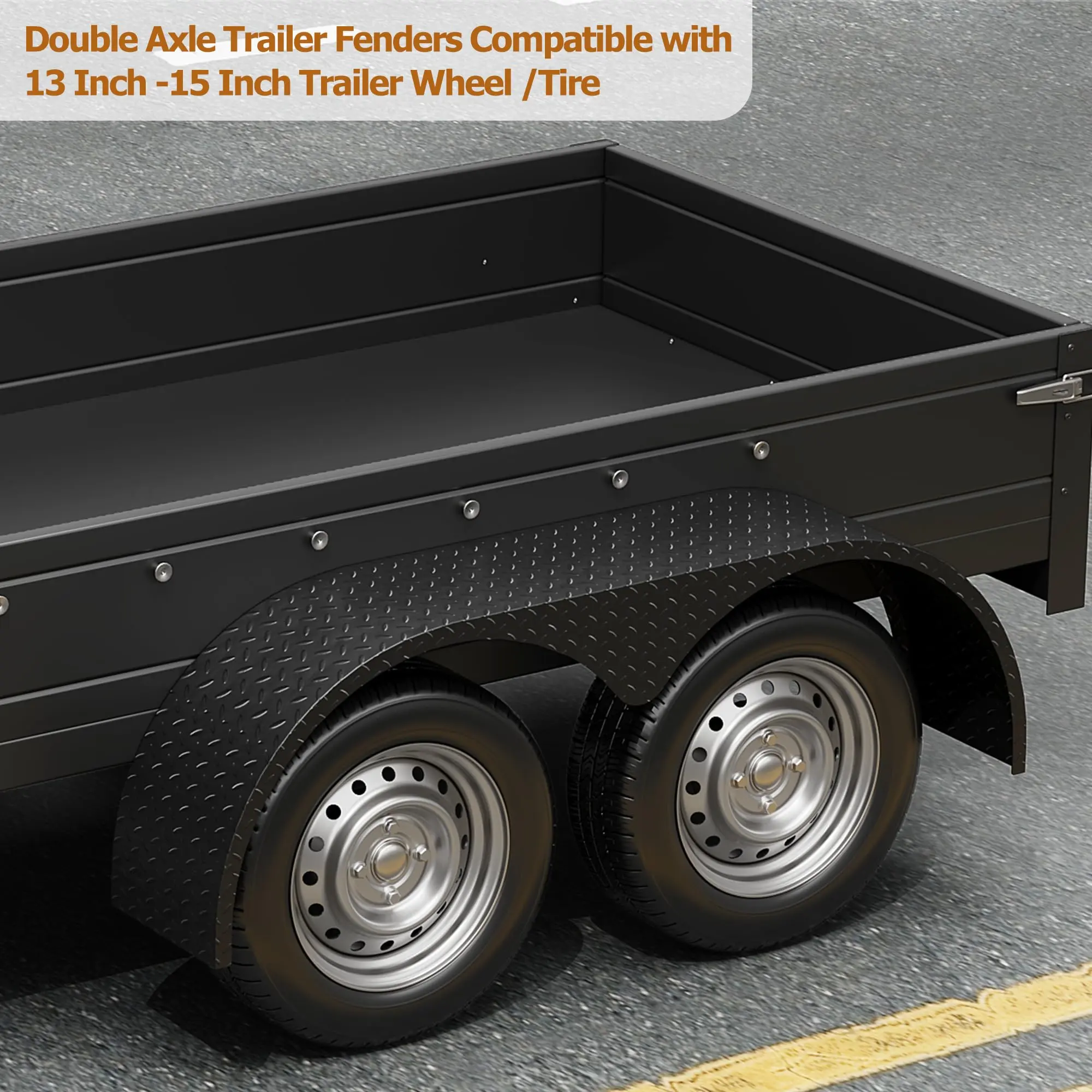 · 【Fit for 13"-15" Tires】 These tandem axle trailer fenders are specifically designed for tandem axle trailers, providing optimal coverage and protection for your tires and trailer body. With dimensions of 66" L x 9.1" W x 20" H, these double axle trailer fenders are professionally engineered to be compatible with tires sized 13" to 15". They are easy to install, ensuring a perfect fit for Car Hauler Trailer,Cargo Trailer,Utility Trailer,Landscape Traileryour trailer.