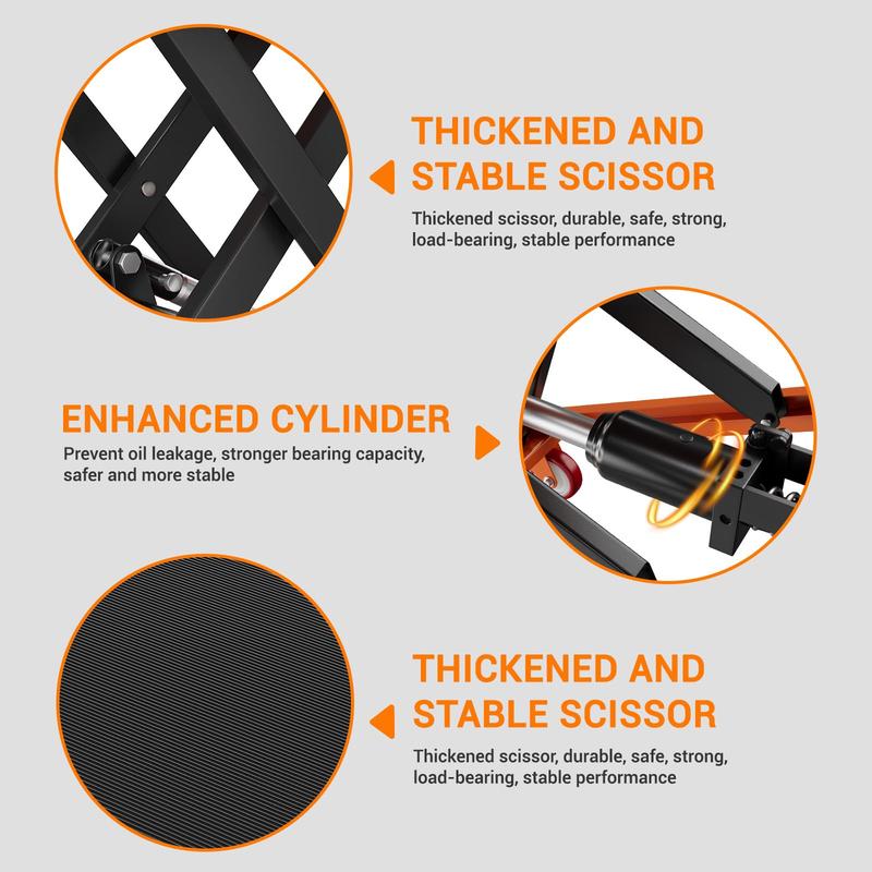 · Precise Lifting Behavior & Stable Construction - The hydraulic lifting system achieves a maximum lift height of 72 cm (28.5 inches). The double scissor design ensures exceptional stability without wobbling or deformation. The powerful hydraulic pump with integrated hydraulic oil enables powerful, fast, and smooth lifting.