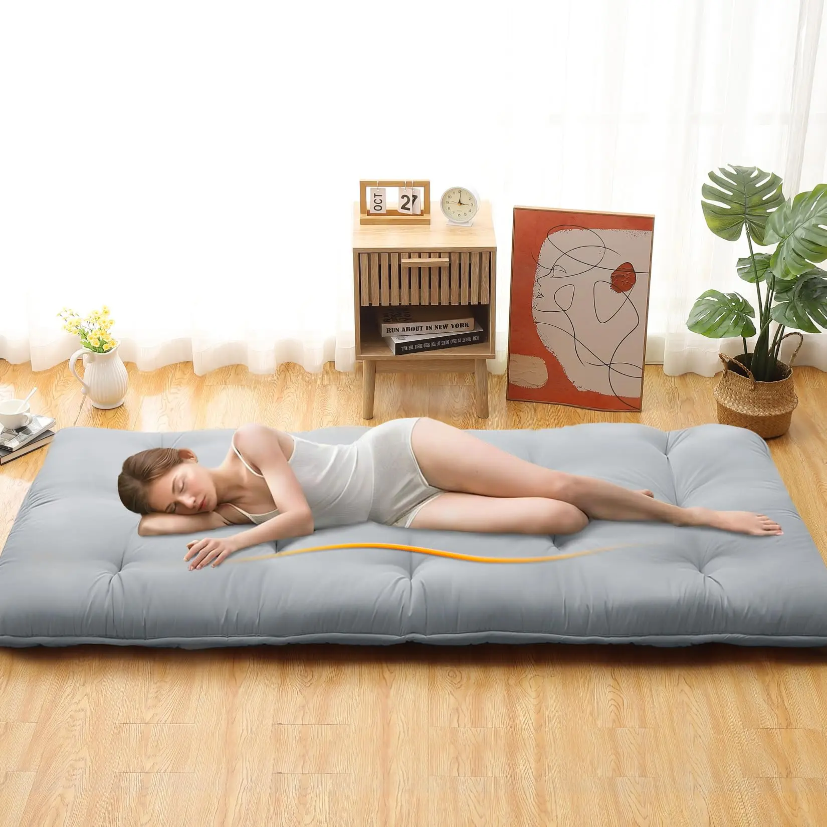 · Promote Deeper Sleep: This Japanese style futon mattress offers a medium-firm yet flexible and supportive surface that embodies ergonomic design principles. This floor mattress features 4 Inches thickness, promoting your cozy sleeping experience, which helps create a serene environment conducive to relaxation and stress relief.