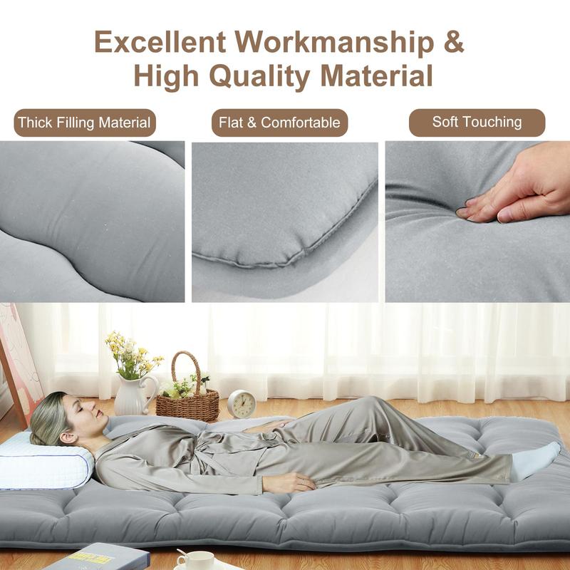 · 【MULTIFUNCTIONAL FUTON FOR FLOOR USE】: The Japanese style floor mattress serves as a practical bedding choice for guest rooms, dormitories, and travel. It can be utilized as a tatami mat, camping mattress pad, sleeping surface for the floor, living room futon, floor lounger, guest bed, or as a play mat for children.