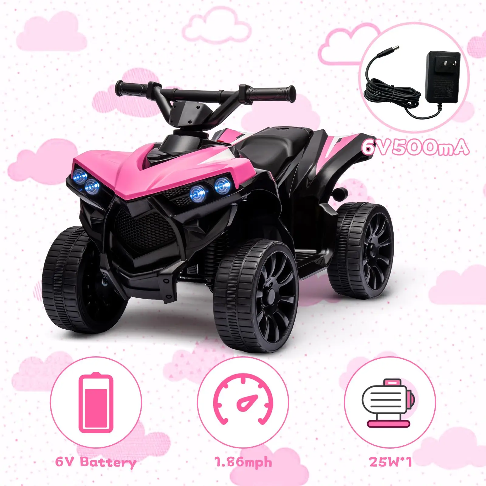 · AMAZING GIFT: This kids' electric ATV is equipped with a 4.5Ah rechargeable battery and powered by a 6V motor, making it a safe and ideal birthday present for toddlers to enjoy!