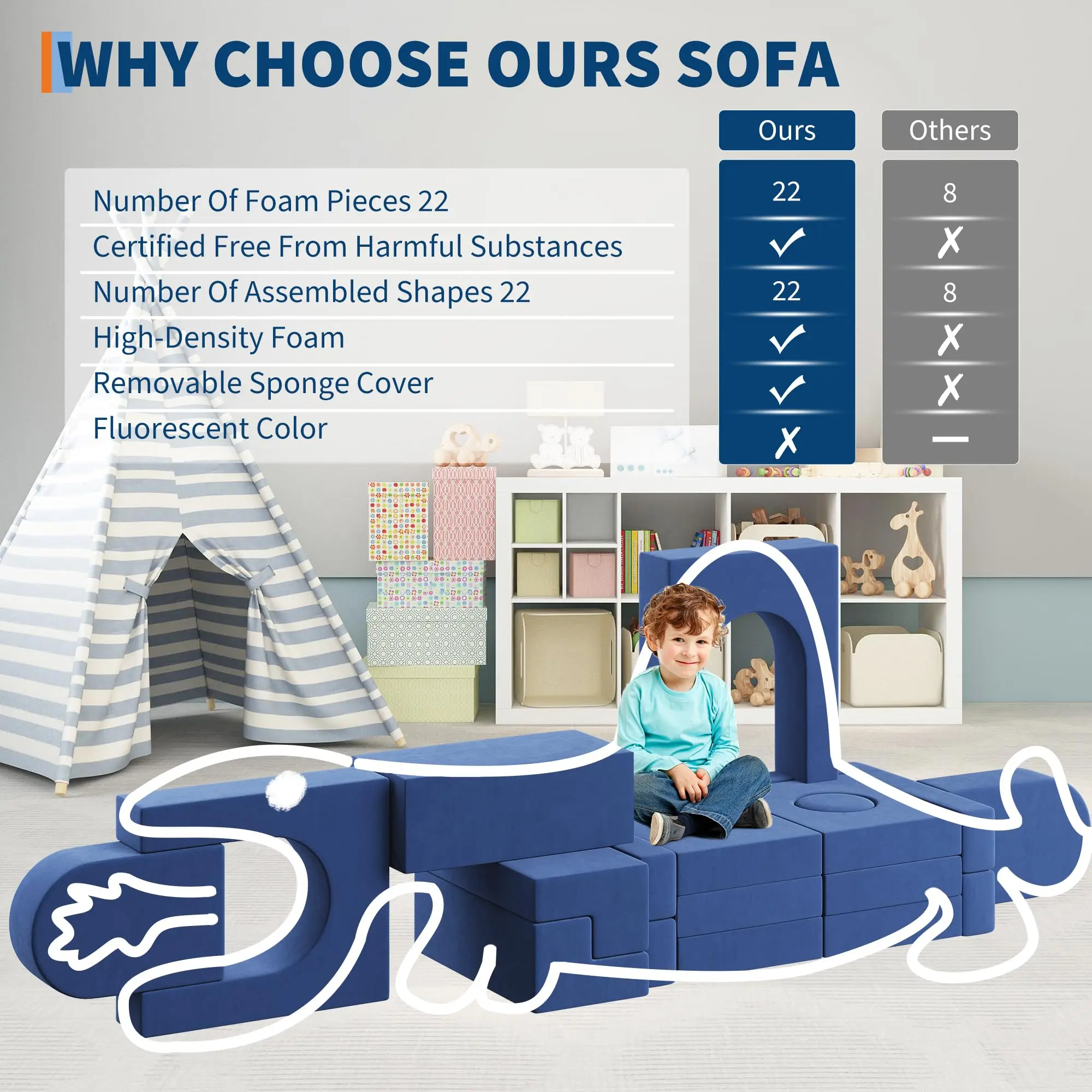 · Perfect Gift for Kids:The kids play couch makes an exceptional gift choice for birthdays, Christmas, celebration.This play sofasupports children’s growth at every stage--helping toddlers learn to climb, giving preschoolers space to create, expanding older children’s imagination through pretend play.