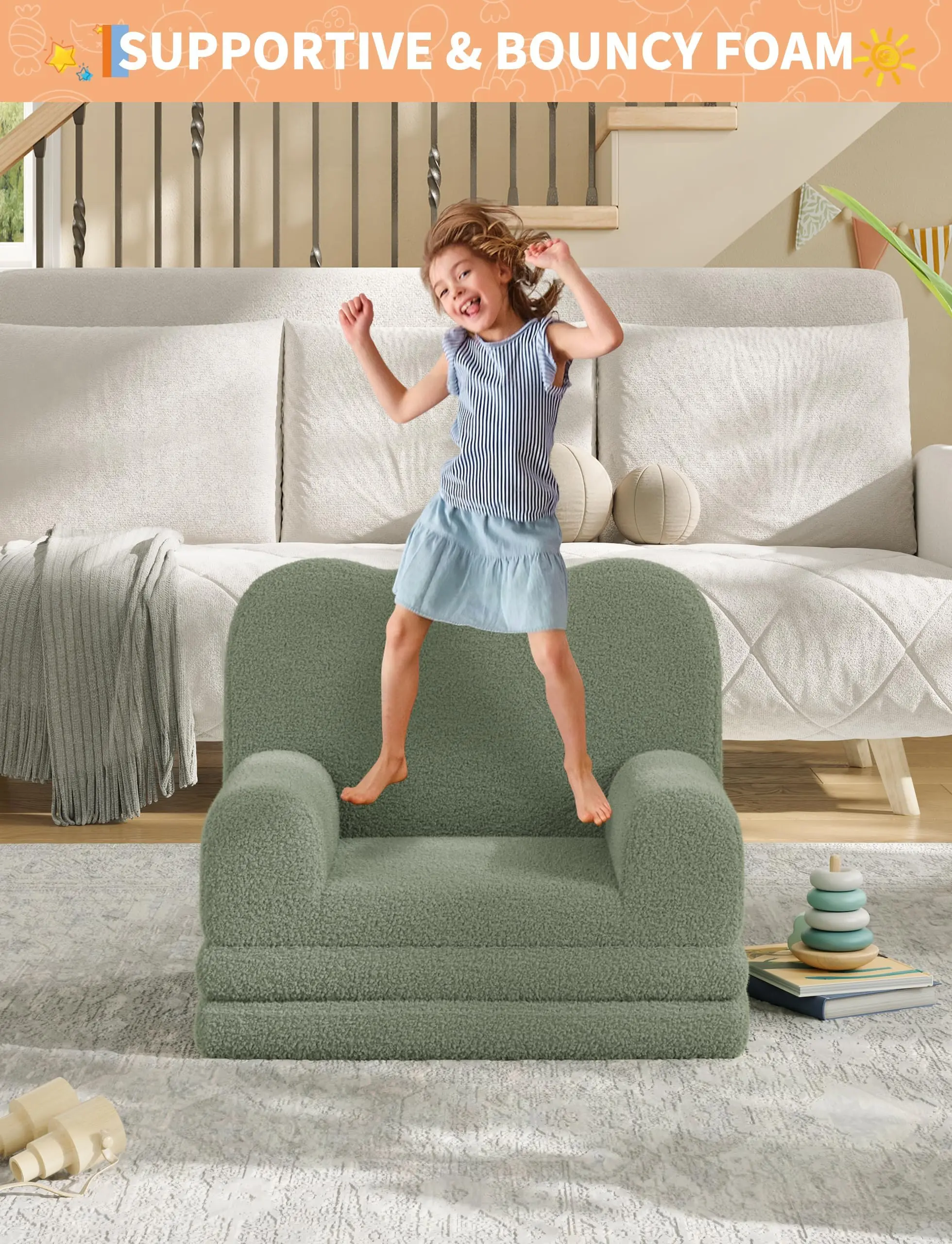 · High-Density Foam Kids' Armchair: Covered with ultra-soft sherpa fabric, this Convertible Kids' Sofa is padded with high-density foam that provides excellent support. The armrests, backrest, and plush seat cushion offer exceptional comfort and structure. Supports up to 68 kg.