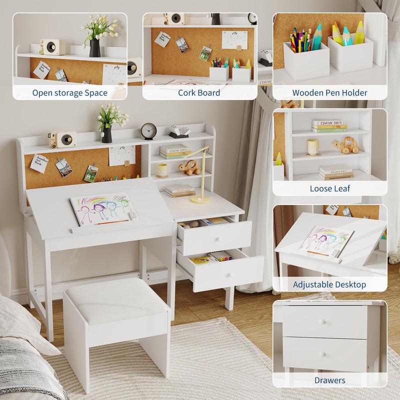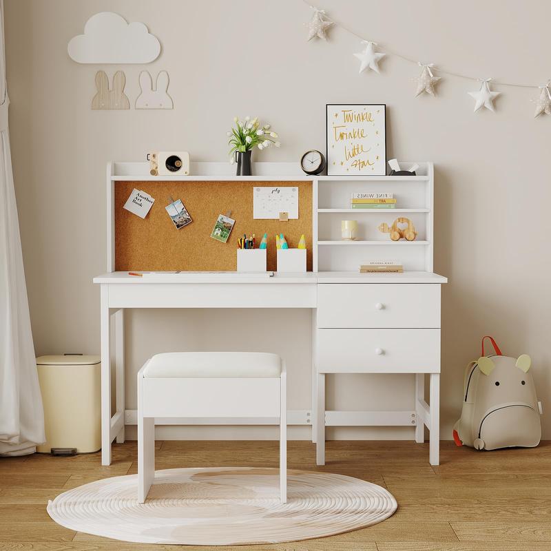 · Creative DIY Cork Board - Equipped with a soft cork board for displaying notes, postcards, and artwork. Lets children personalize their own inspiring study space and showcase their creativity.