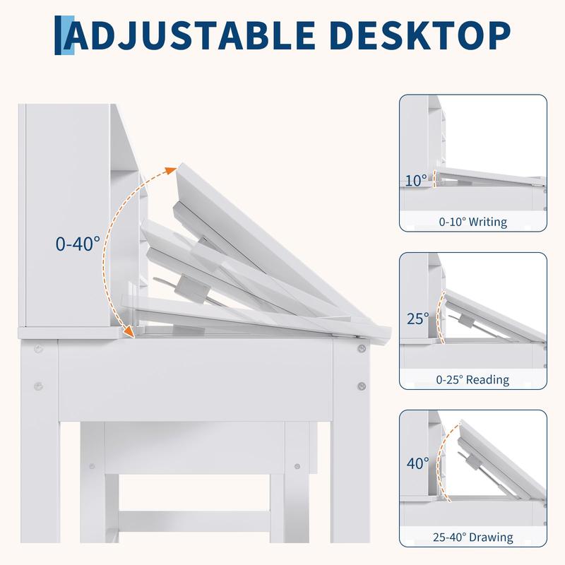 · Adjustable Desktop for Multiple Uses - The left desktop adjusts from 0 to 40 degrees, ideal for reading, writing, and drawing activities. Perfect for placement in study rooms, playrooms, or children's bedrooms.