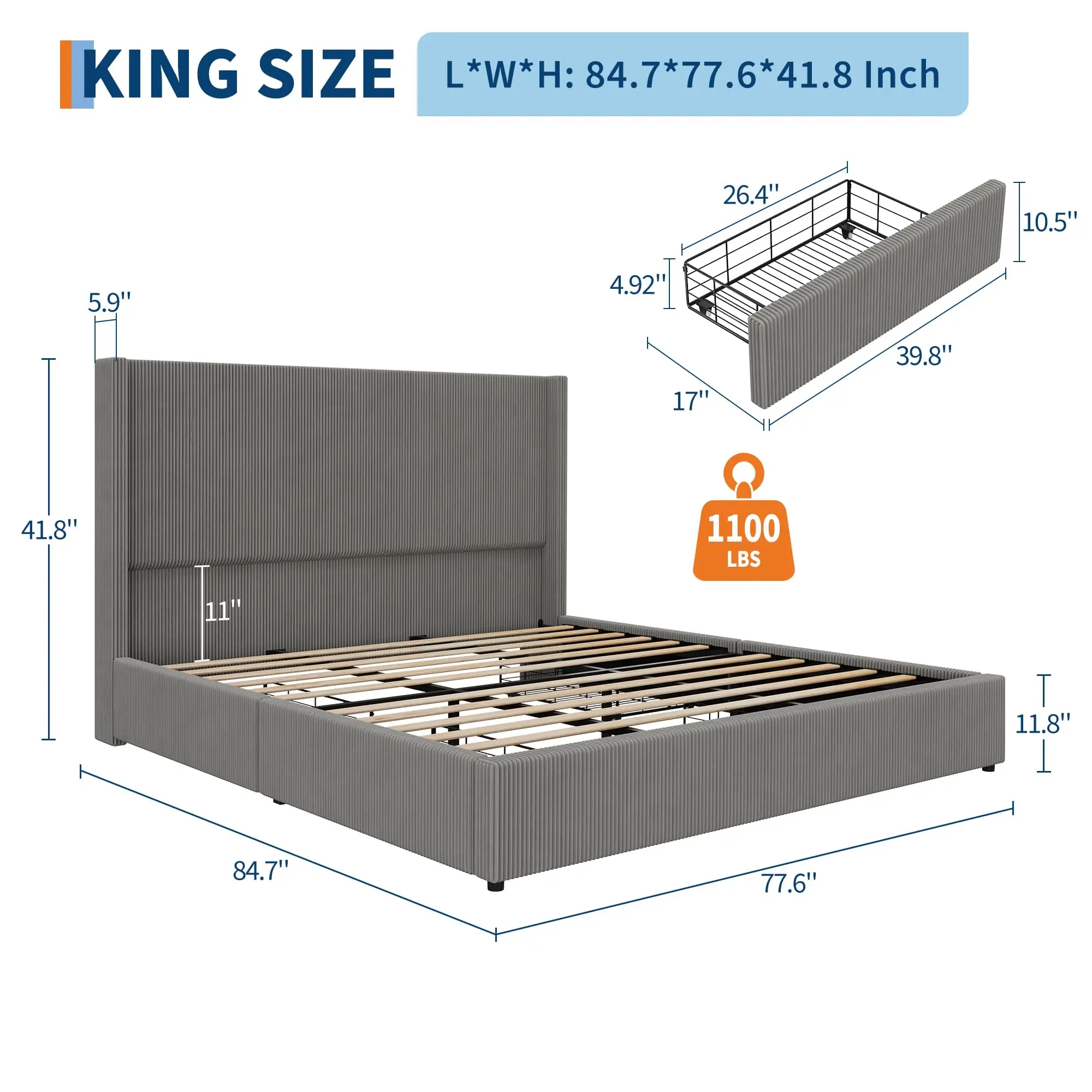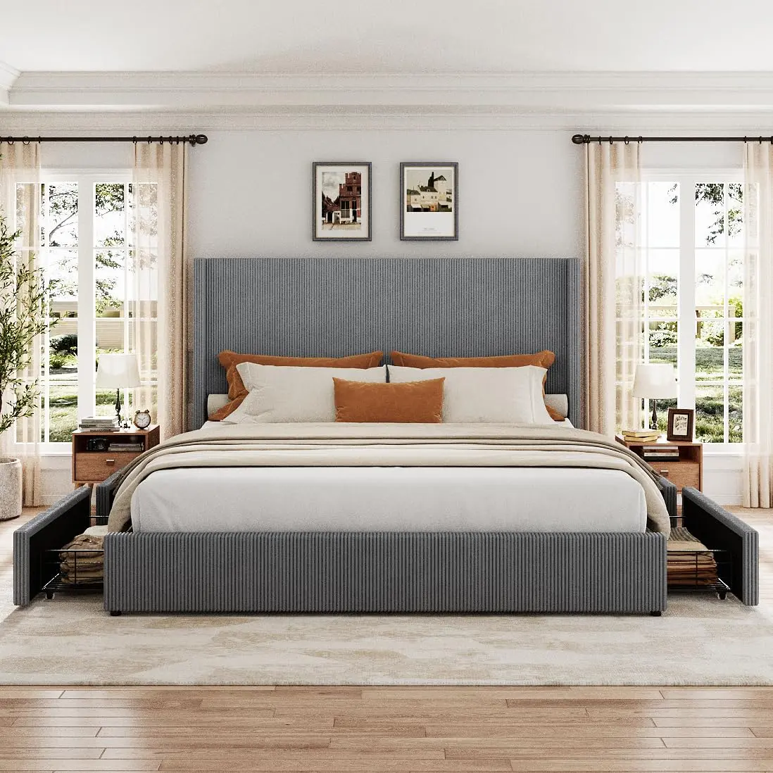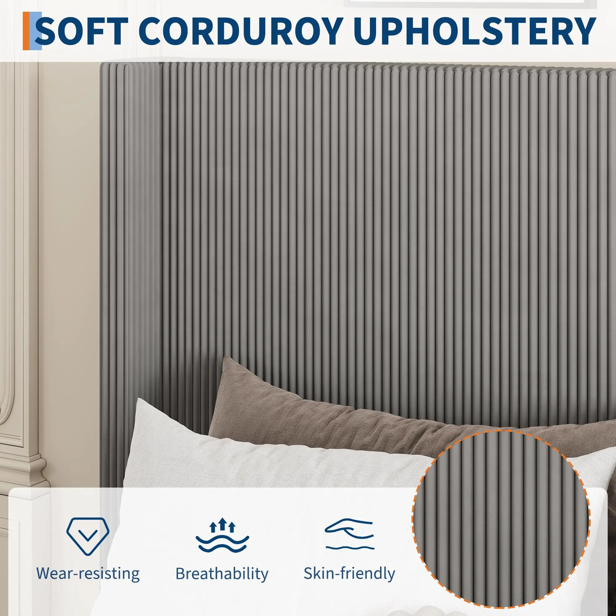 · Elegant Corduroy Design: Upholstered in exquisite grey corduroy with clean lines, complemented by walnut color legs to enhance your bedroom’s aesthetic with a graceful and classic look.