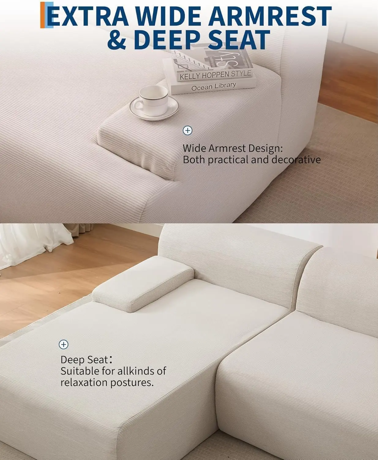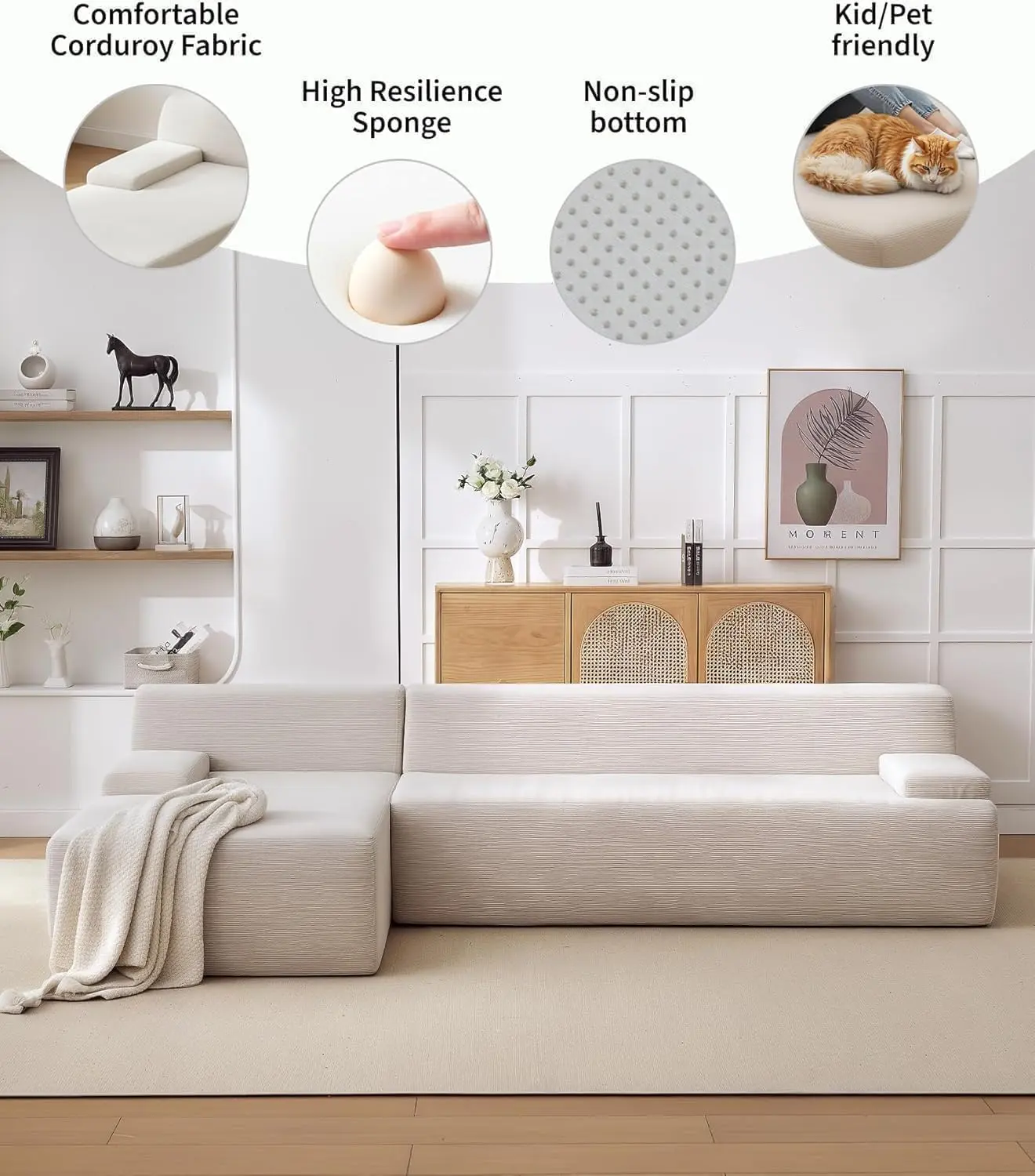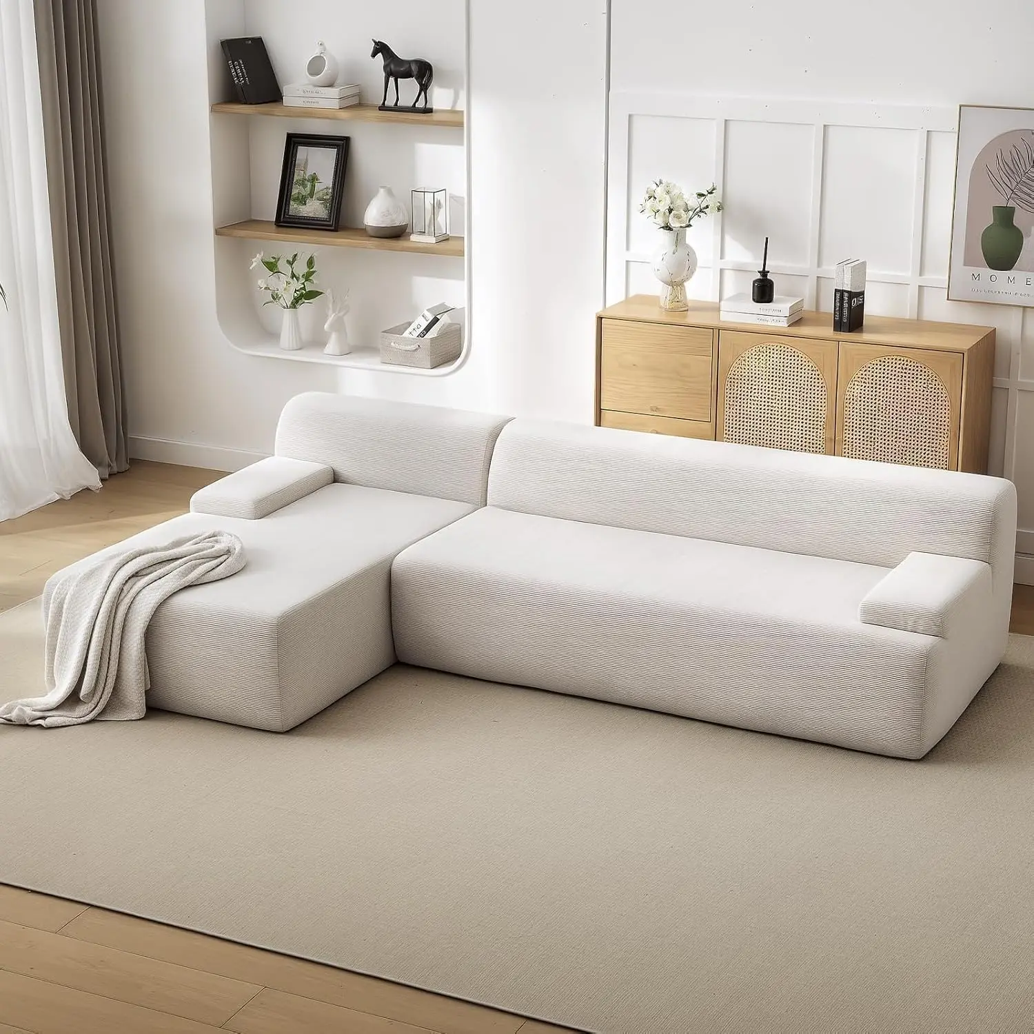 · Minimalist & Practical Living Room Centerpiece: With its clean lines, boneless couch design, and neutral aesthetic, this modular L-shape sofa serves as a stylish and functional focal point for your living area. It offers ample seating for family and guests, blending comfort with modern simplicity for everyday living