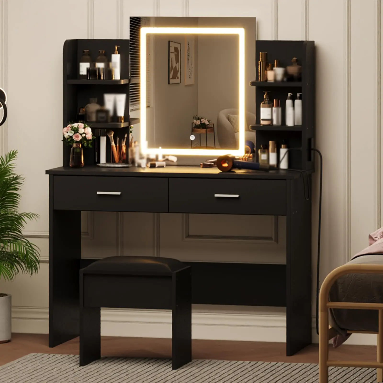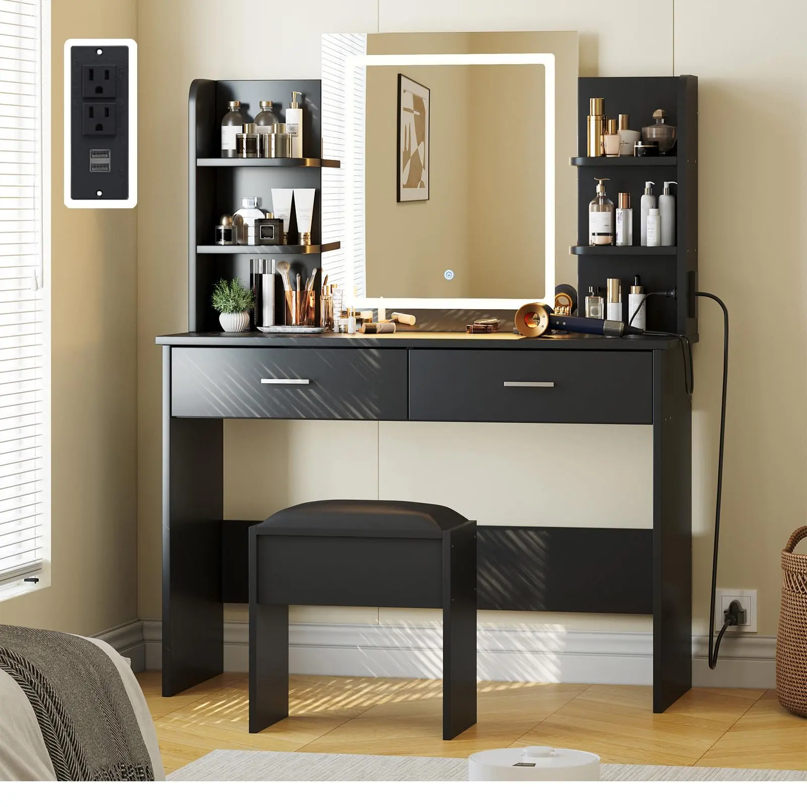· 【Convenient Charging Station】quipped with 2 standard outlets and 2 USB ports, this makeup vanity desk with lights makes it easy to connect your hairdryer and curling iron, as well as charge your phone, tablet, or other devices. Get picture-perfect selfies after finishing your makeup with ease.