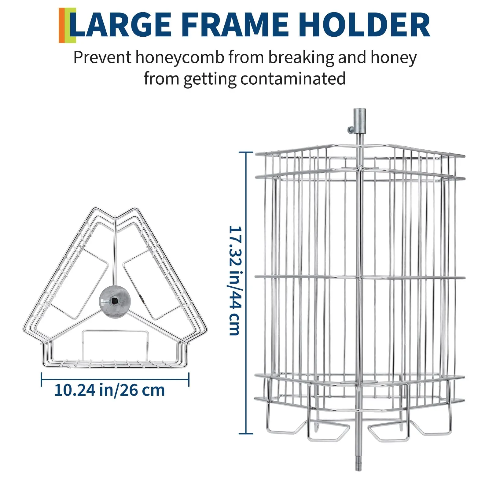 · 【Hold More, Harvest Faster】: Love processing lots of honey? Our large holder fits 2 to 4 frames at once! The smooth, rounded edges inside are super gentle, so your precious honeycombs stay in one piece while spinning. Get more honey done in less time - it's that simple!