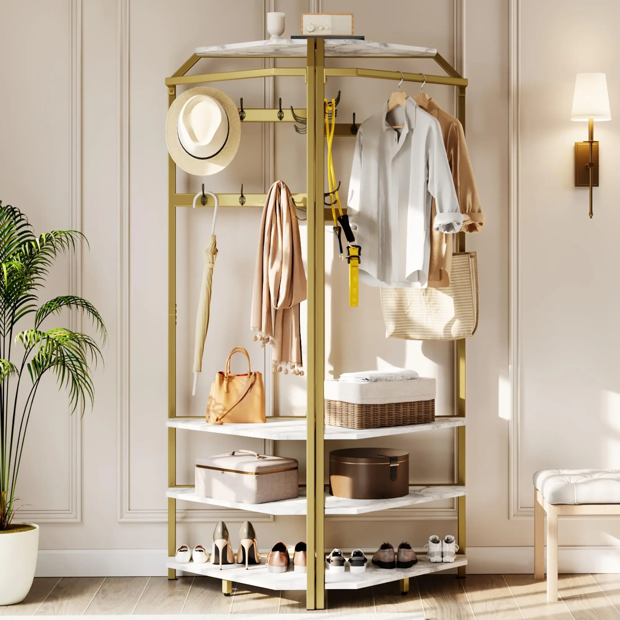 · 【Stylish design with open coat rail】Top shelf for hats, umbrellas or open wardrobe look. Modern clothes rack transforms corners into stylish hallway wardrobe solutions.