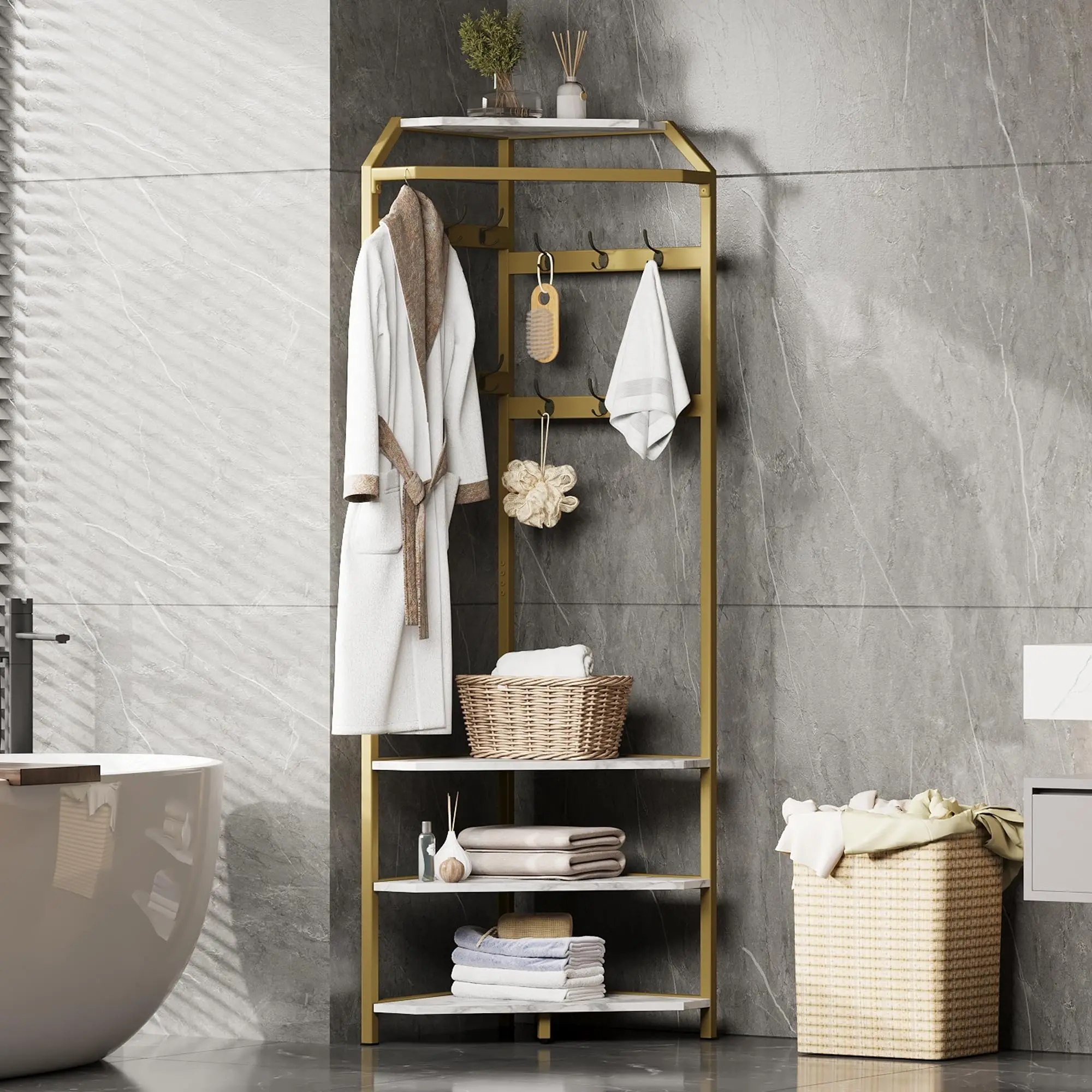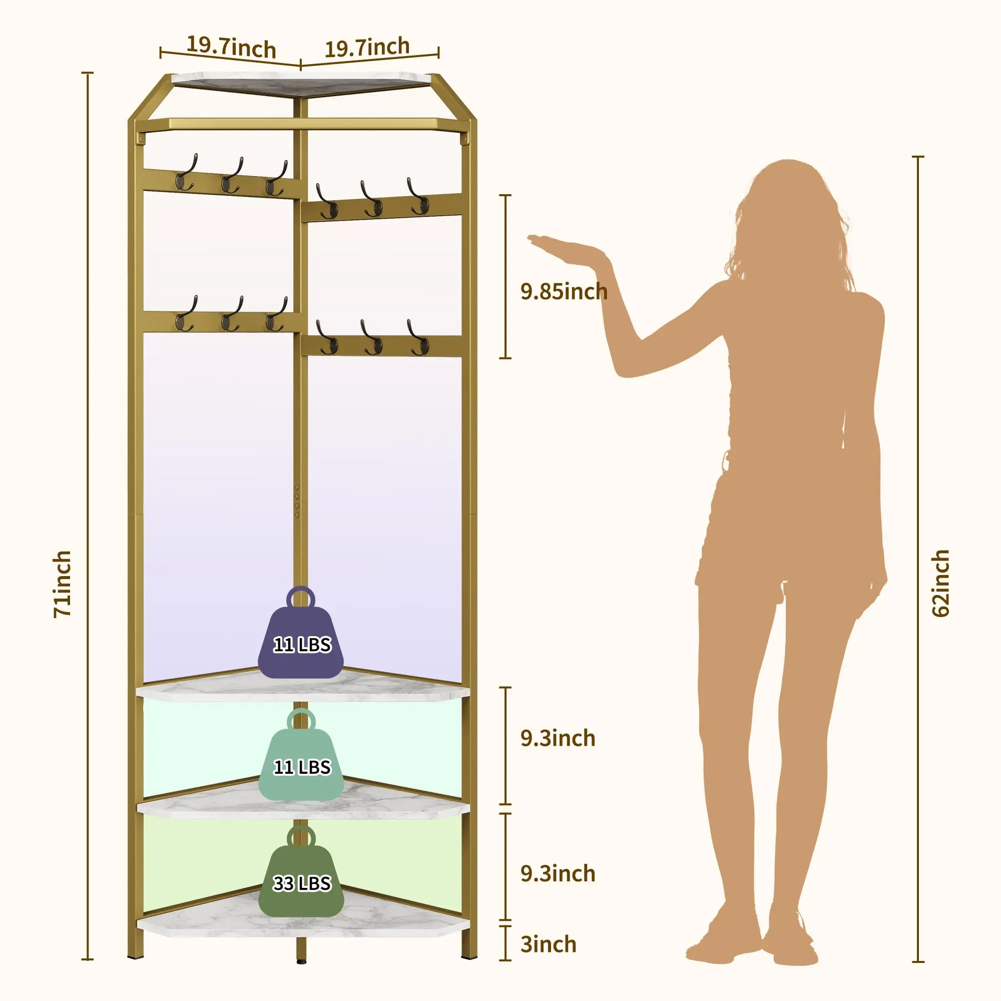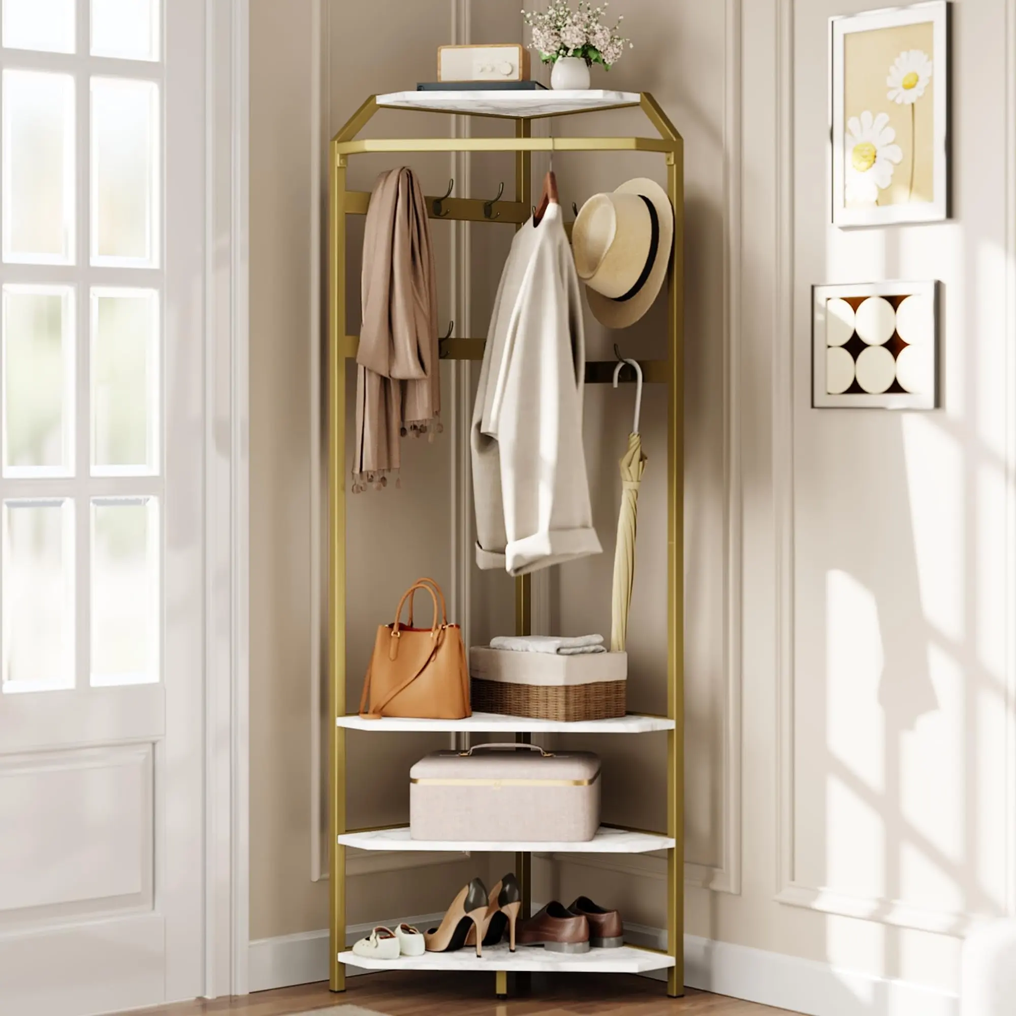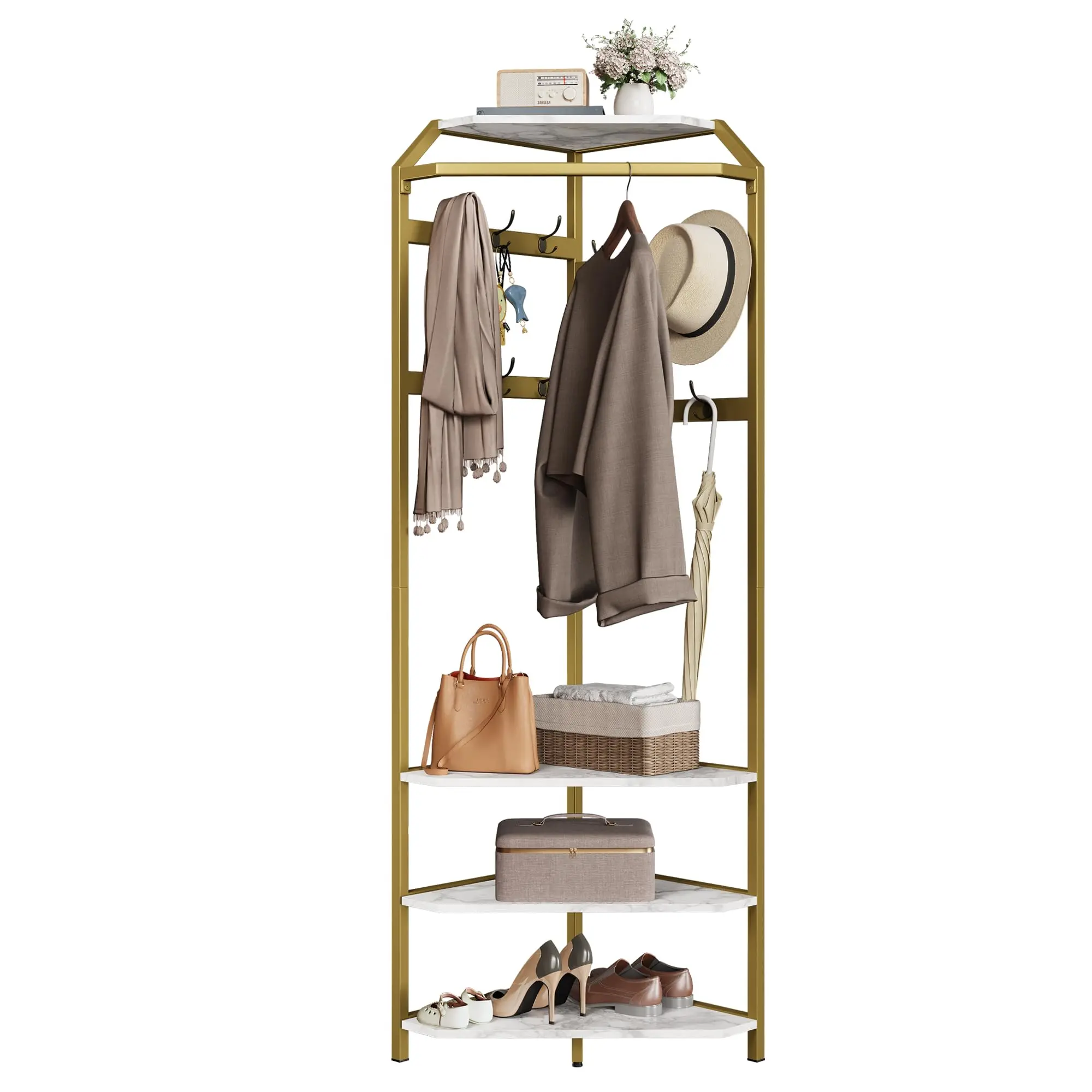 5. Garvee Metal Corner Coat Rack 180 cm with 12 Double Hooks - 4-Tier Storage Shelf - Space-Saving - For Hallway, Living Room, Bedroom, Office, Corridor, Entrance - 50 x 50 x 180 cm - C