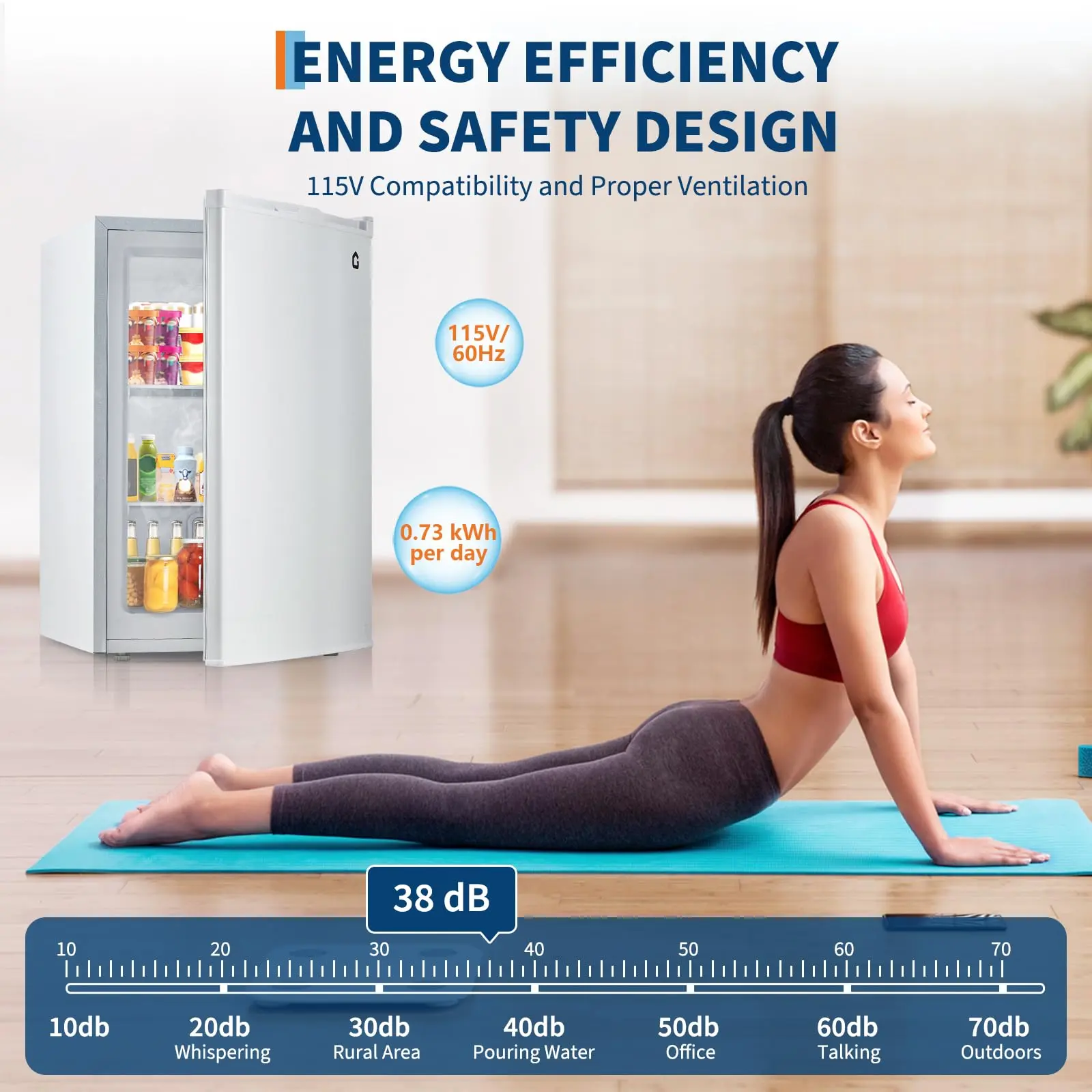 · Energy Efficient and Quiet Operation: This energy-efficient upright freezer operates at just 0.73 kWh per day, making it a cost-effective choice for your home. With a noise level of only 38 dB, comparable to a quiet rural area, it’s perfect for bedrooms, studies, and other peaceful spaces, effortlessly cooling your food and drinks