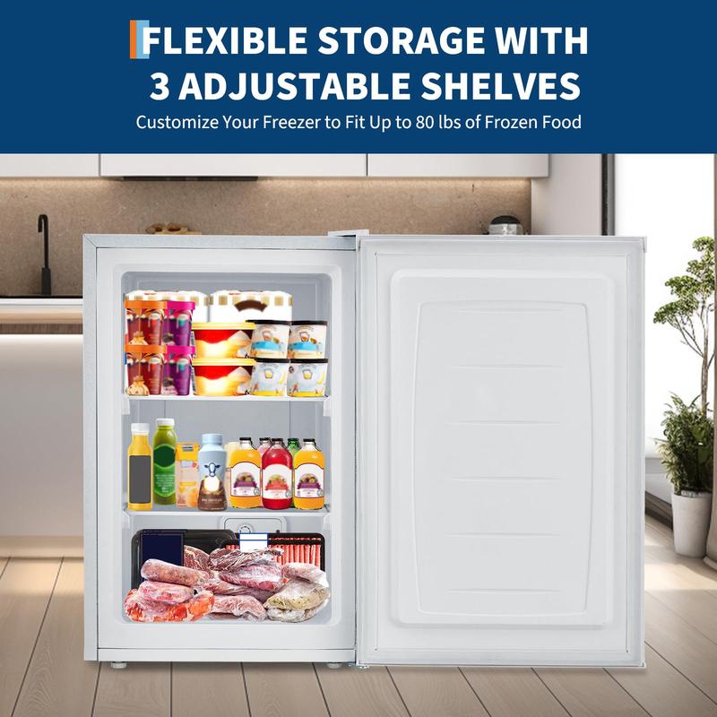 · Versatile Storage Features: The upright freezer with removable shelves includes a crisper drawer that keeps fruits and greens fresh and flavorful. With adjustable shelving, you can customize the storage space to fit your needs, allowing you to maximize the capacity of this small upright freezer and keep everything organized