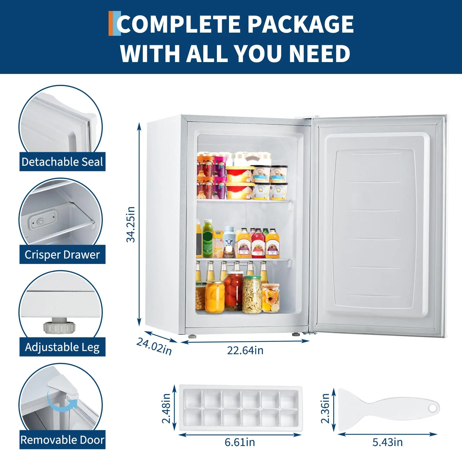 · Spacious Storage Capacity: Measuring 22.64"W x 24.02"D x 34.25"H, this 3.0 cu. ft upright freezer offers plenty of space for all your frozen essentials—from fruits and vegetables to seafood and ice cream—accommodating up to 80 lbs of frozen food. Designed to prevent smell, this mini upright freezer ensures you enjoy fresh, clean food every time