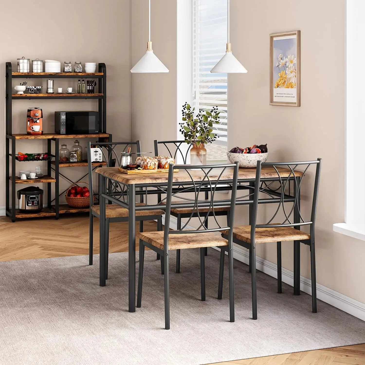 · [Sturdy Construction]: Constructed with MDF board and sturdy metal frames, this kitchen table and chairs set are designed for longevity. The sleek black finish not only adds a modern touch but also provides excellent corrosion resistance.